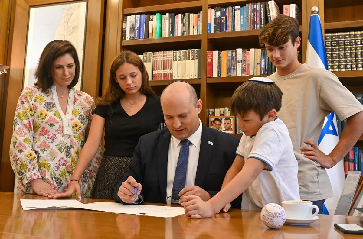 ראש הממשלה היוצא נפתלי בנט וראש הממשלה הנכנס יאיר לפיד קיימו בצהריים (חמישי) טקס חילופין מצומצם. בטקס השתתפו בכירי שתי הלשכות ובני משפחות בנט ולפיד