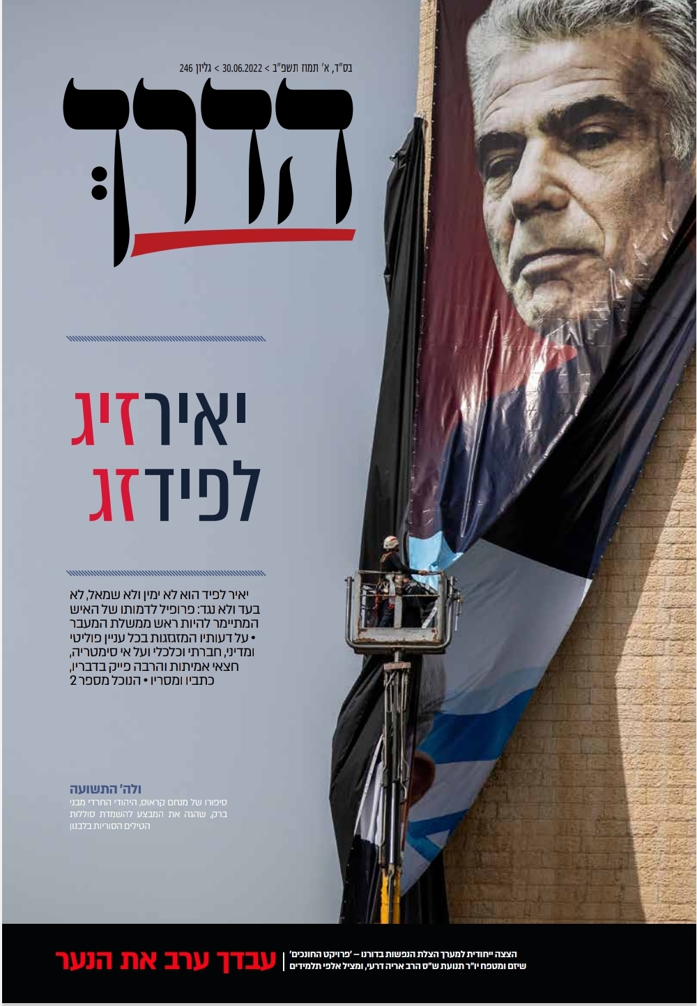 הכתבה הראשית, בשונה משאר העיתונים שלא התייחסו במגזין למצב הממשלה, העיתון מביא כתבת פרופיל על ראש הממשלה החלופי לשעבר, יאיר לפיד שהתמנה היום לראש ממשלה. תחת הכותרת "יאיר לפיד זיג זג", הם מכתירים אותו לנוכל מספר 2.