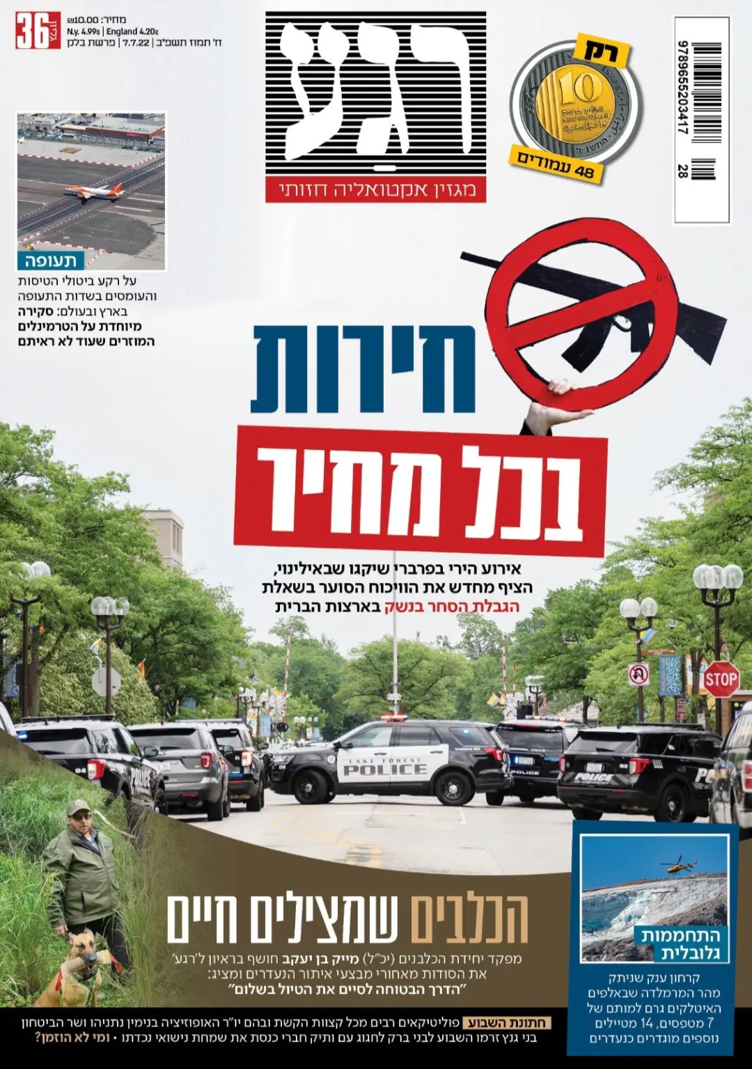 בכותרת הראשית הם בחרו באירועי הירי בארצות הברית שהציפו מחדש את הוויכוח הסוער בשאלת הגבלת הסחר בנשק בארצות הברית.