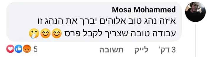 בנוסף, ערבי בשם מוסא מוחמד, הגיב בפוסט על התאונה: "איזה נהג טוב, צריך לקבל פרס".
