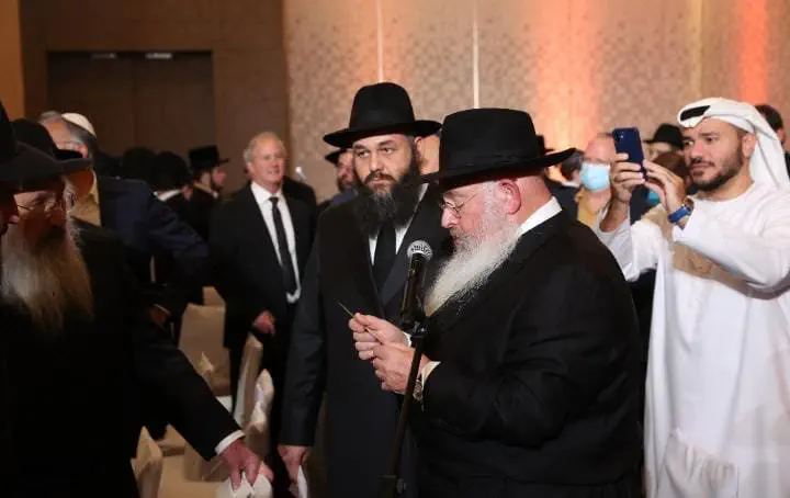 1,500 אורחים מכל רחבי העולם נהרו משעות הלילה לאבו דאבי, להשתתף בחתונה החסידית של הרב דוכמן, המתגורר באיחוד האמירויות כבר שמונה שנים. בין האורחים הרבים שהגיעו לחתונה, בולטים בני מלוכה אמירתיים, רבנים, ואישים בכירים.