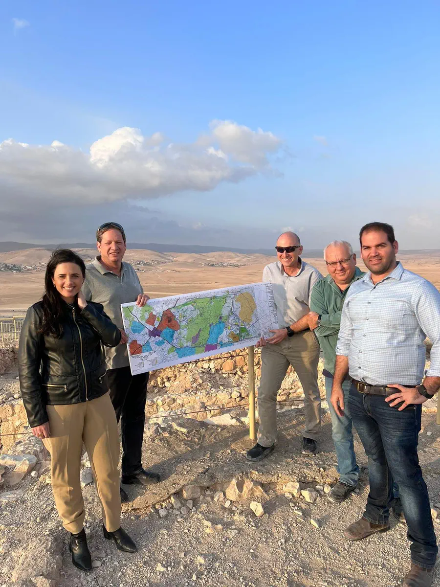לסיור השרה שקד בנגב הצטרפו יו"ר מטה תכנון הלאומי שלומי הייזלר, מנכ"ל משרד הפנים יאיר הירש, ראש המועצה האזורית תמר ניר ונגר, יו"ר הוועדה המחוזית דרום עודד פלוס ואנשי החטיבה להתיישבות.