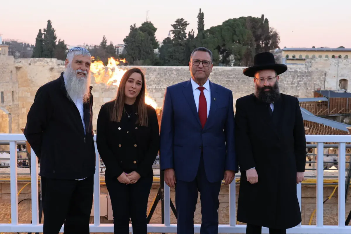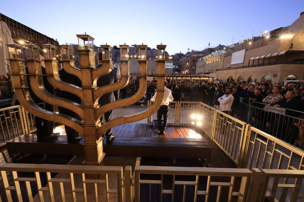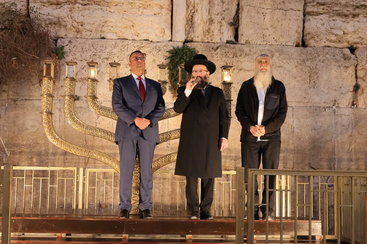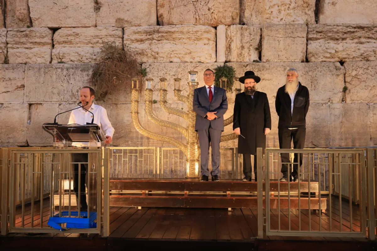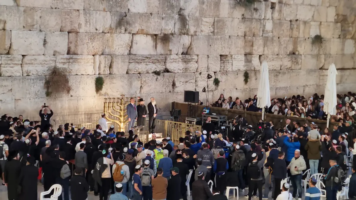 ברחבת הכותל המערבי התקיימה הערב (א') הדלקת נר ראשון של חנוכה במעמד רב הכותל המערבי שמואל רבינוביץ, ראש העיר ירושלים משה ליאון, ח"כ מאי גולן מהליכוד ומנכ"ל הקרן למורשת הכותל מרדכי (סולי) אליאב.