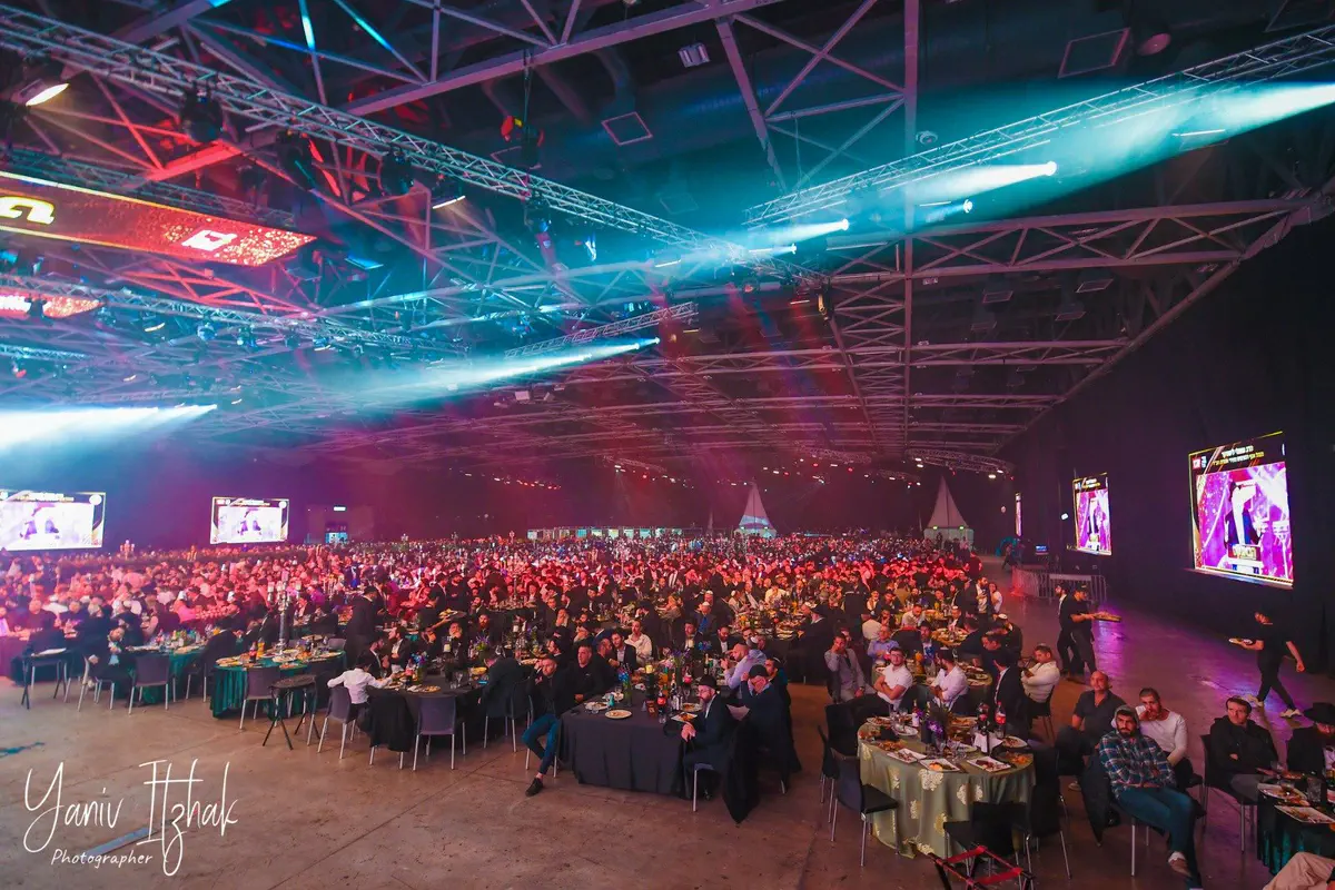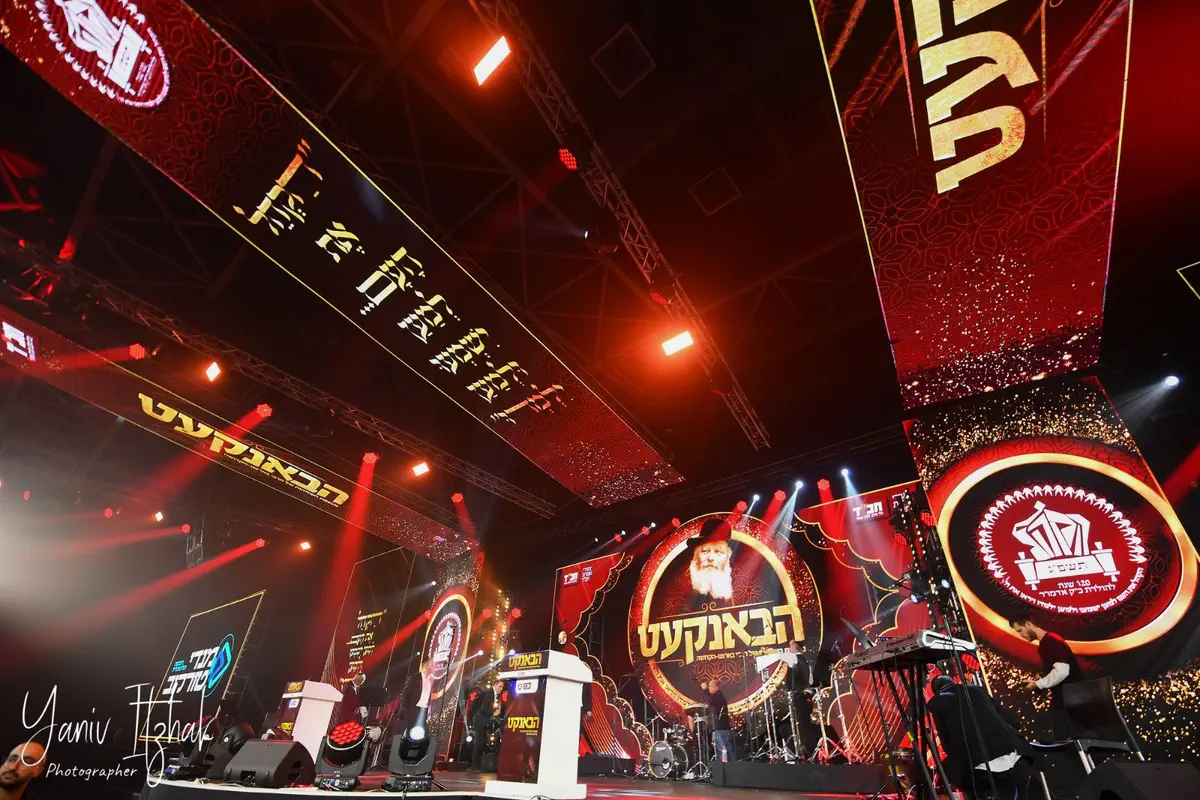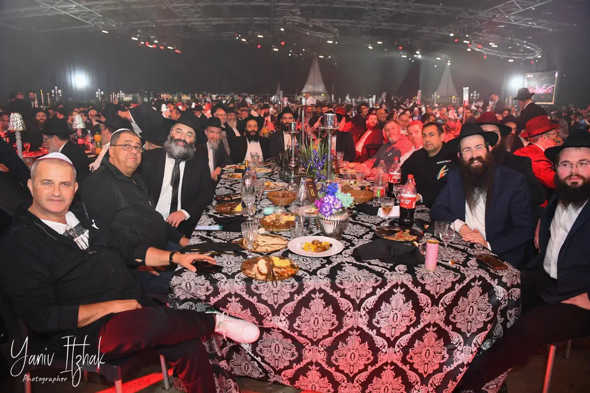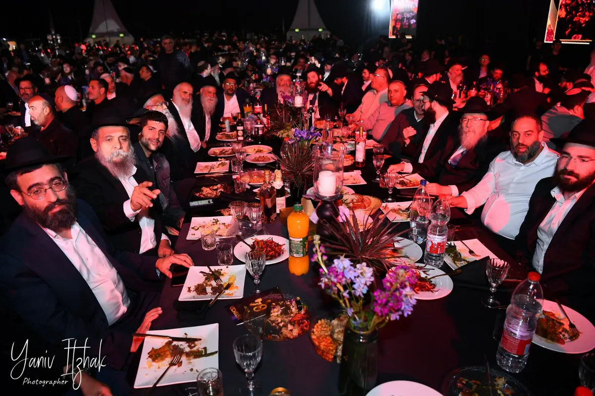 החל מהשעה שבע בערב, ביום רביעי השבוע, החלו לזרום לגני התערוכה אלפי השלוחים ותומכיהם, והתיישבו על יד שולחנות ערוכים ועליהם מנות שף משובחות, לצלילי נעימות חסידיות מאת הבעל מנגן נמואל הרוש.