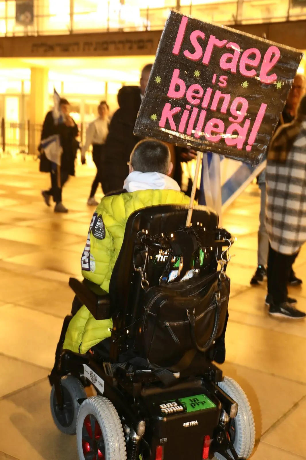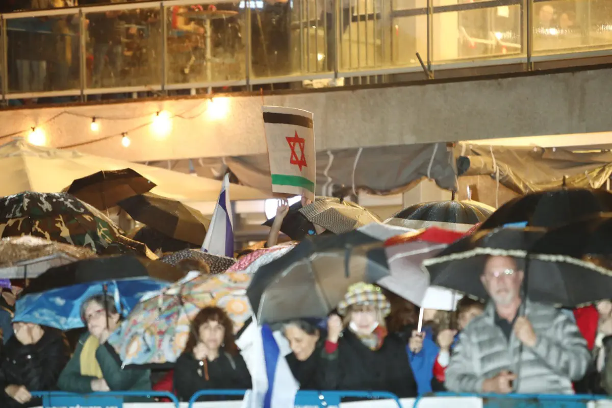 הקהל שרק ''בוז'' לנשיא יצחק הרצוג בזמן נאומו של יו"ר התנועה לאיכות השלטון, אליעד שרגא. "כבוד הנשיא הרצוג, אני קורא לך מכאן היום, בשם כל הקהל הקדוש הזה, קום עשה מעשה, הכרז על ראש הממשלה כבלתי כשיר למלא את תפקידו, הכרז על נבצרותו לאלתר", אמר שרגא ופנה לנשיא. "ההיסטוריה לא תשכח לך אם לא תעשה את זה".