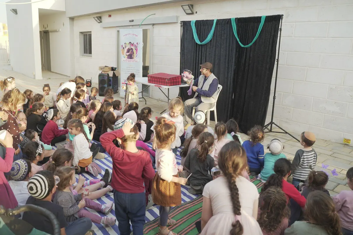 התושבים וילדי השכונה נהנו מהופעה מרתקת של השחקן 'אמיתי המספר' שסיפר בייחודיות על דמותו המיוחדת ומעשי הרב אלישע וישלצקי זצ"ל.
