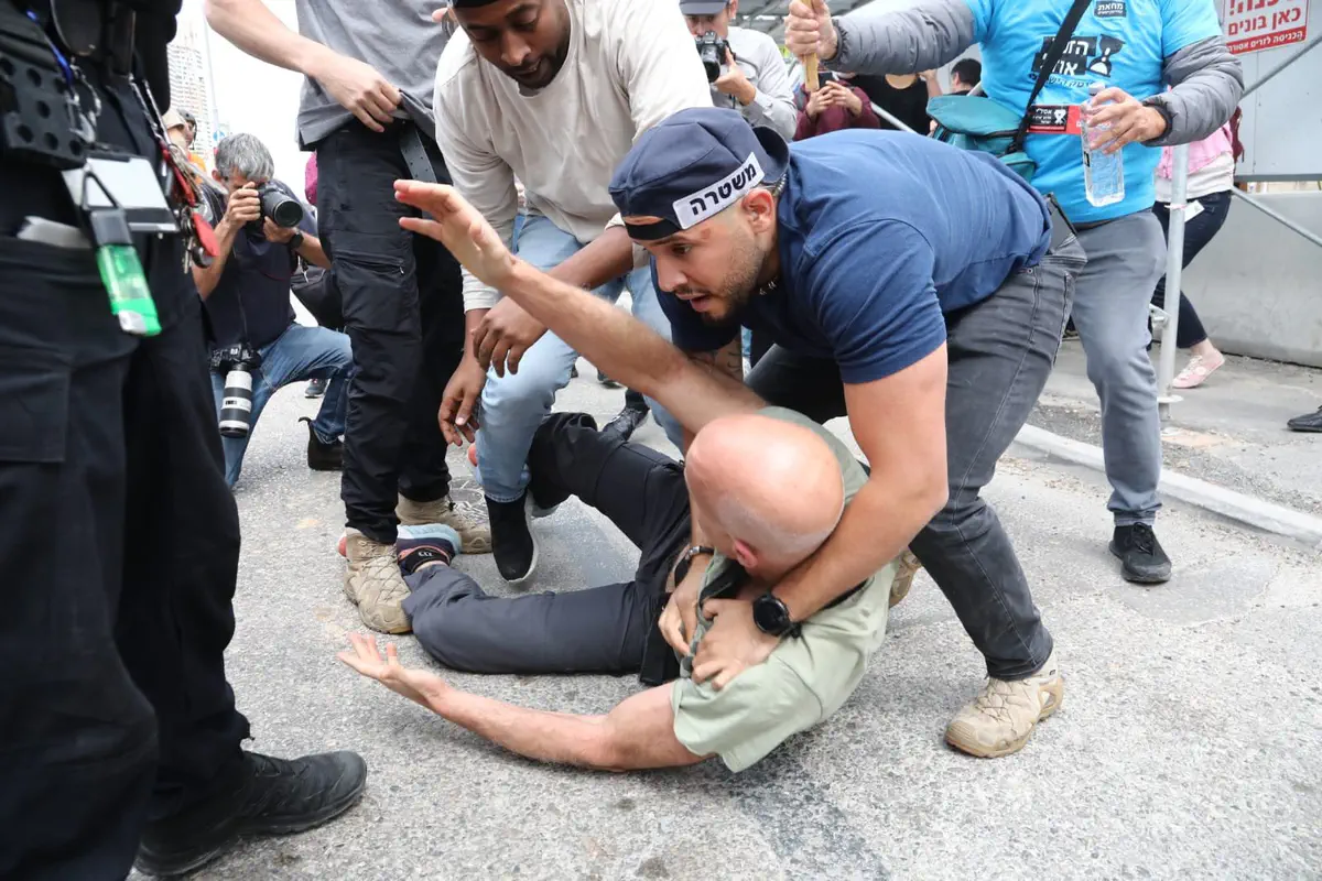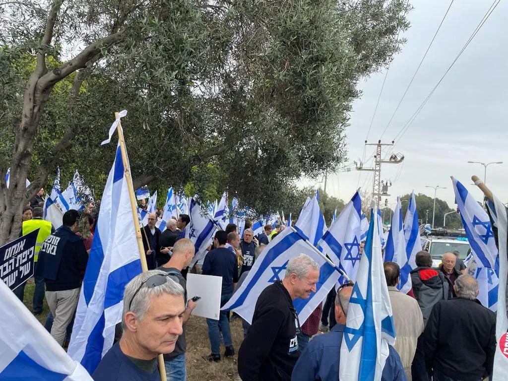 בצומת איירפורט סיטי נעצרו שני מפגינים - אחד מהם חשוד שחסם את הכניסה לאולם האירועים במקום בו השתתפו השרים ניר ברקת ואבי דיכטר - שהוכה בראשו על ידי אחת המפגינות. המפגינה אותרה ונעצרה מאוחר יותר.