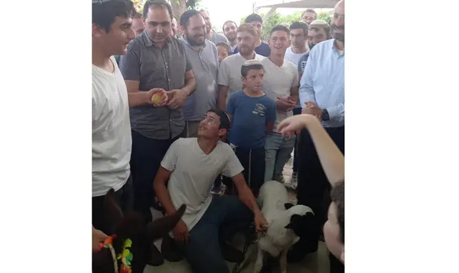 אנשי הישוב אלוני שילה התכנסו היום (ה') ברחבת בית הכנסת בישוב לקיים מצוות פטר חמור בהשתתפות הרב צבי קוסטינר ראש ישיבת מצפה רמון, הרב יצחק הלוי, רבה של קרני שומרון, הרב יניב כהן והרב שי גרין, ראש מדרשת שילת.