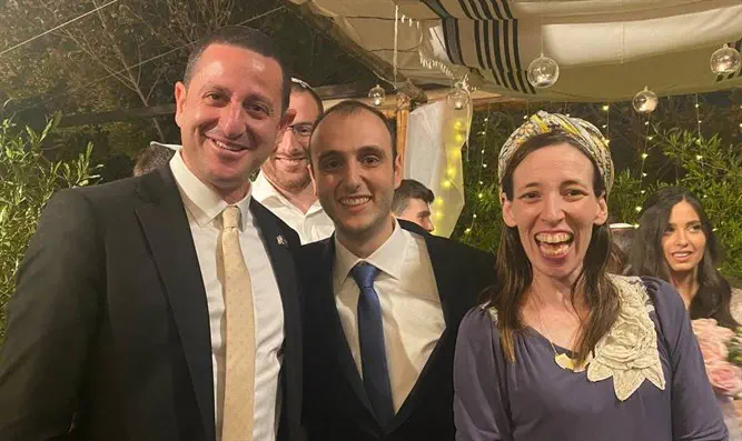 יו"ר המפלגה השר לביטחון לאומי איתמר בן גביר רקד עם החתן, איתו השתתפו בחתונה גם שר הנגב והגליל יצחק וסרלאוף וח"כ לימור סון הר מלך.