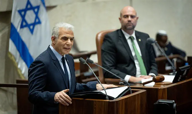יו"ר האופוזיציה לפיד נאם גם הוא ואמר: "אנחנו לא צעדנו אתמול כדי להכריז מלחמה, אלא כדי למנוע מלחמה. כדי להגיד לממשלה, אם יש בכם עדיין הגינות, תעצרו. אם התכוונתם למילה אחת כשדיברתם על אחדות העם, תעצרו.
