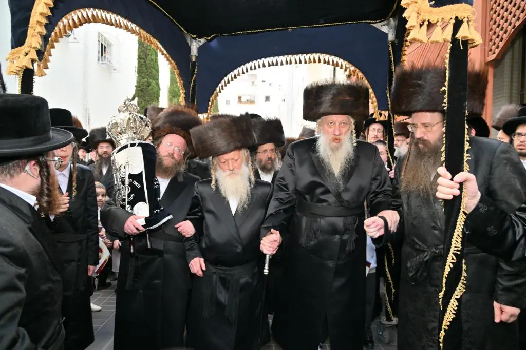 טרם התהלוכה נערך מעמד 'לחיים' בבית ראש הישיבה הרב משה אהרן אויש בהשתתפות הנדיב שלמה אויש, רבני העיר ונכד האדמו"ר מבעלז.