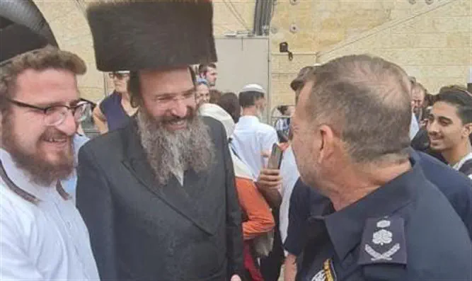 מפכ"ל המשטרה קובי שבתאי בשיחה עם ראש מנהלת הר הבית הרב שמשון אלבוים ובנו חיים אלבוים - דובר השר בן גביר, בתום ברכת הכהנים. הרב אלבוים שיבח את המפכ"ל על השירות היעיל והאדיב בעליית היהודים להר בחג הסוכות