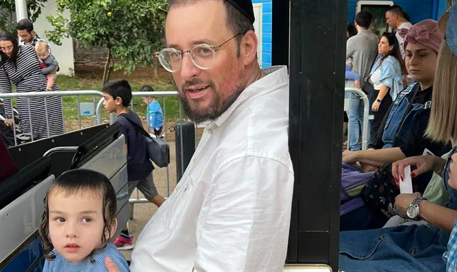 שמחת חג: הפרשן החרדי ישראל כהן הגיע יחד עם בנו לטיול בימי חול המועד בפארק הלאומי.