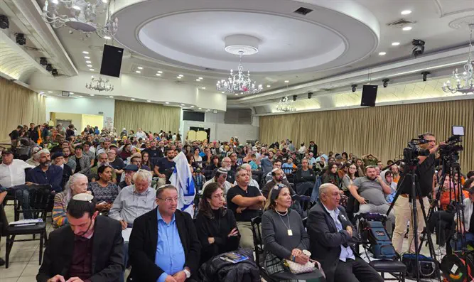 מאות בני אדם התכנסו הערב (רביעי) באולמי סהרה באשדוד תחת הכותרת: "חוזרים לחבל עזה".