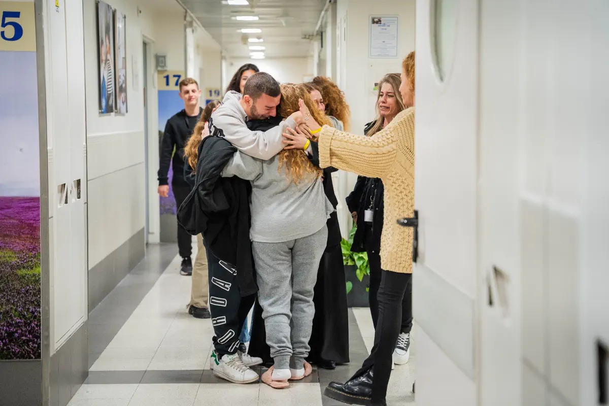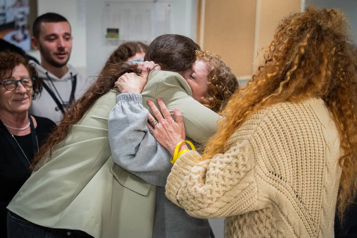 מירב טל ששוחררה אתמול (שלישי) מהשבי בעזה התאחדה עם בני משפחתה אתמול בבית החולים איכילוב.