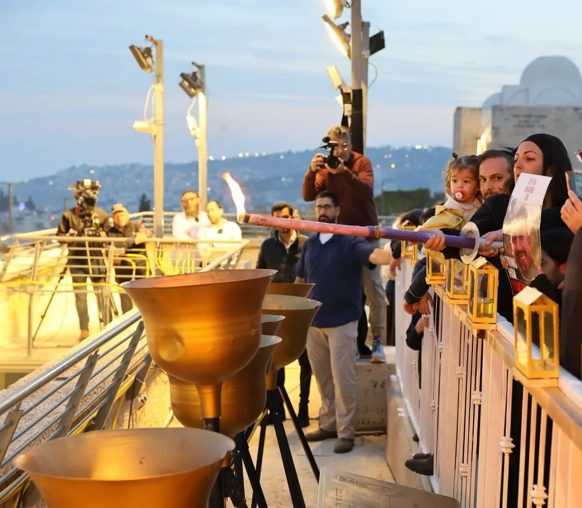 הדלקת הנרות התקיימה במעמד הרב הראשי לישראל הרב יצחק יוסף, רב הכותל המערבי והמקומות הקדושים הרב שמואל רבינוביץ, השר לשירותי דת מיכאל מלכיאלי, ראש העיר ירושלים משה לאון, מנכ"ל הקרן למורשת הכותל המערבי מרדכי (סולי) אליאב, מנכ"ל הרבנות הראשית יהודה כהן, מנכ"ל המשרד לשירותי דת יהודה אבידן, מתאם השבויים והנעדרים תא"ל גל הירש, שלומי ברגר אביה של אגם ברגר תצפיתנית שנחטפה לעזה, עינב דנינו אמו של אורי שנחטף ברעים ויחד עימם משפחות החטופים וקהל רחב.