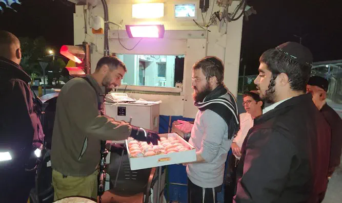 חבר מועצת העיר נוף הגליל מנחם גנדל יצא בליל נר רביעי של חנוכה לפנק את חיילי צה"ל בצפון השומרון בסופגניה חמה ובשמחת החג.