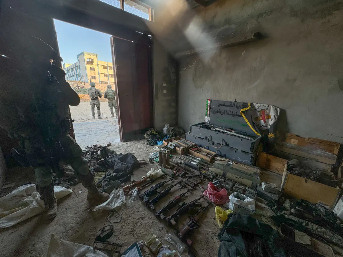 בעקבות אינדיקציה מודיעינית, סרקו הלוחמים מספר תשתיות טרור של חמאס ואיתרו מחסן אמצעי לחימה שהוקם על ידי החמאס בסמוך לבית ספר המשמש כמחסה לאזרחים עזתיים. המחסן הכיל עשרות נשקים, תחמושת, ראשי קרב לרקטות ומרגמות, רימונים וציוד צבאי.