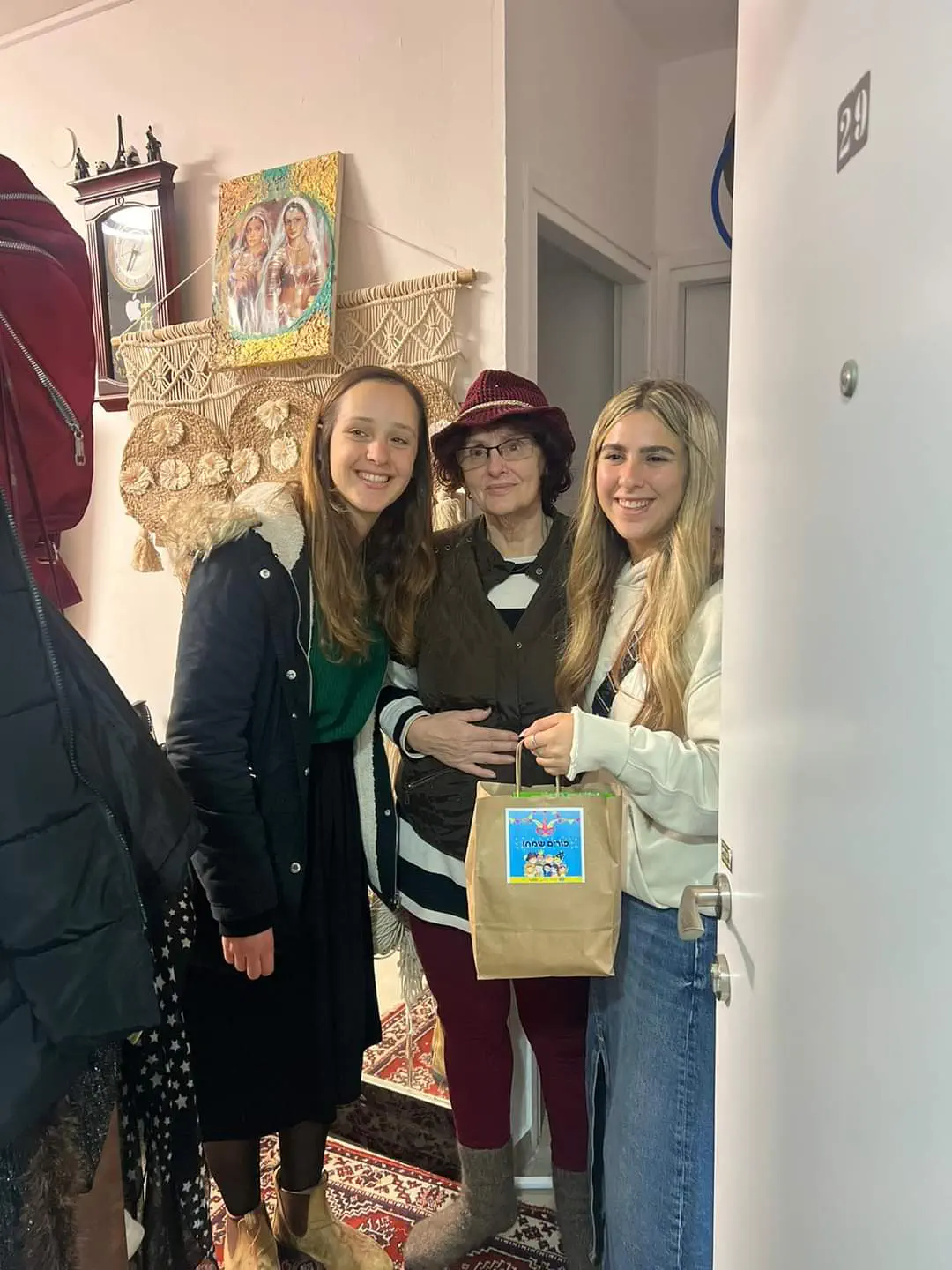 בנוסף לחלוקת תווי המזון בסך 78,000₪ ביום פורים עצמו, הסתובבו תלמידי ותלמידות המוסדות בין בתי הקשישים בעיר לחלק להם משלוחי מנות.