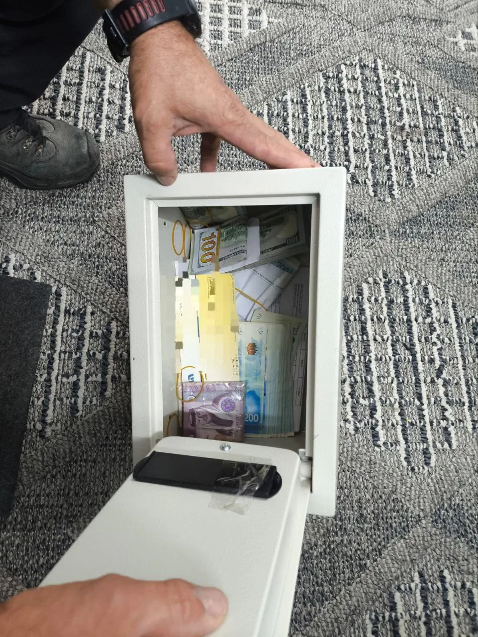 במהלך הפעילות, בחיפוש שבוצע בביתה, נתפסו מאות אלפי שקלים מוסלקים במקומות שונים בבית, ק"ג מטיל זהב, בנוסף לאמצעי מדיה, מכשירי טלפון ומסמכים אחרים שנאספו לצרכי חקירה שמנוהלת בשיתוף השב"כ ביחידה המרכזית של מרחב הנגב במחוז הדרומי.