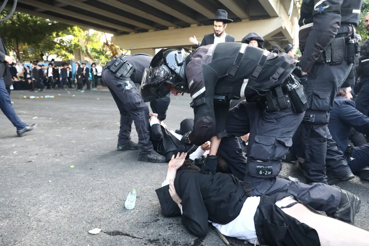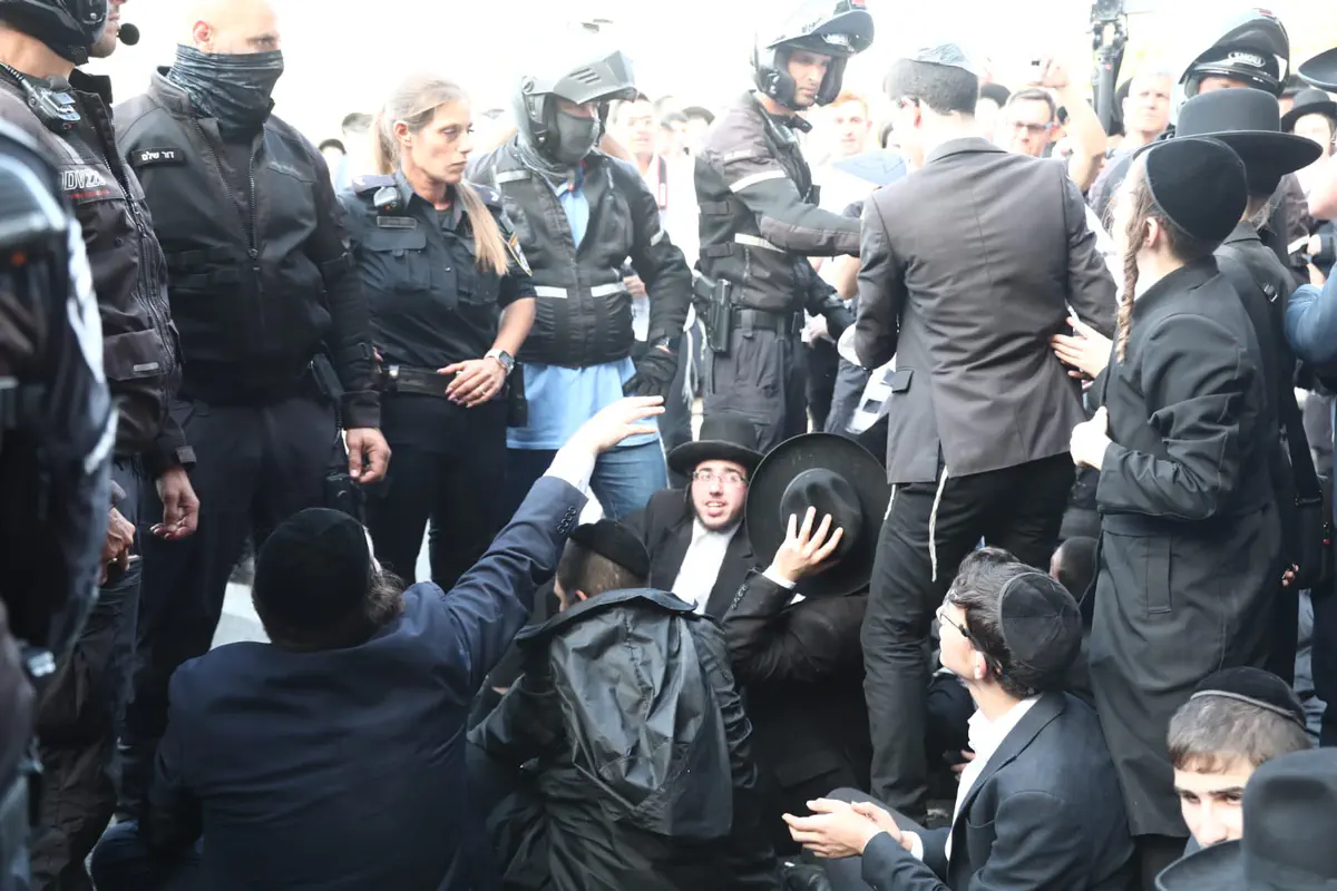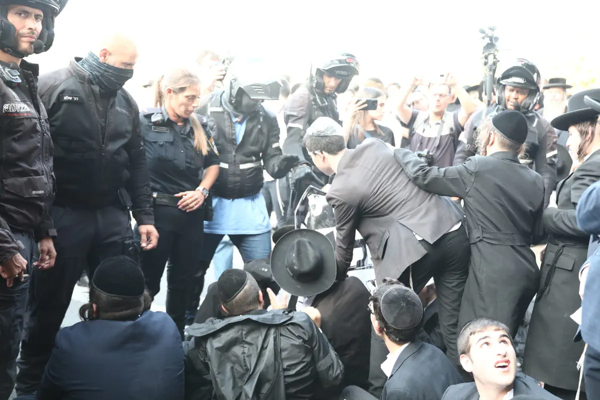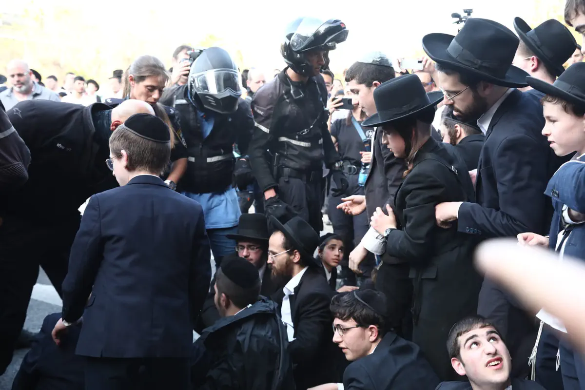 בהודעה שפרסמה המשטרה נכתב: "מאות מפגינים חוסמים את הכביש, מתעמתים עם השוטרים, נשכבים מתחת למכת"ז, מסכנים את חייהם, משליכים חפצים ותוקפים את הסוסים והפרשים בליווי קריאות נאצה לעבר השוטרים 'נאצים' ו'רוצחים'".