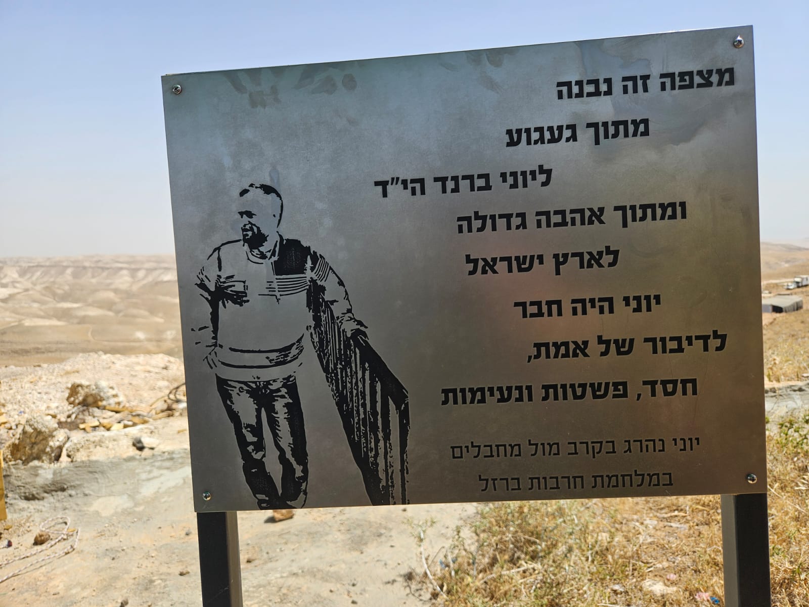 אביו הרב חנן ברנד, מספר לערוץ 7: "התרגשנו להיות שם, הרגשנו במצפה שהוקם הוא חלק מהמאבק על ארץ ישראל, מסמל את אהבת ארץ ישראל ועם ישראל של יונתן שטייל בכל חרבי ארץ ישראל ועשה את שביל ישראל.