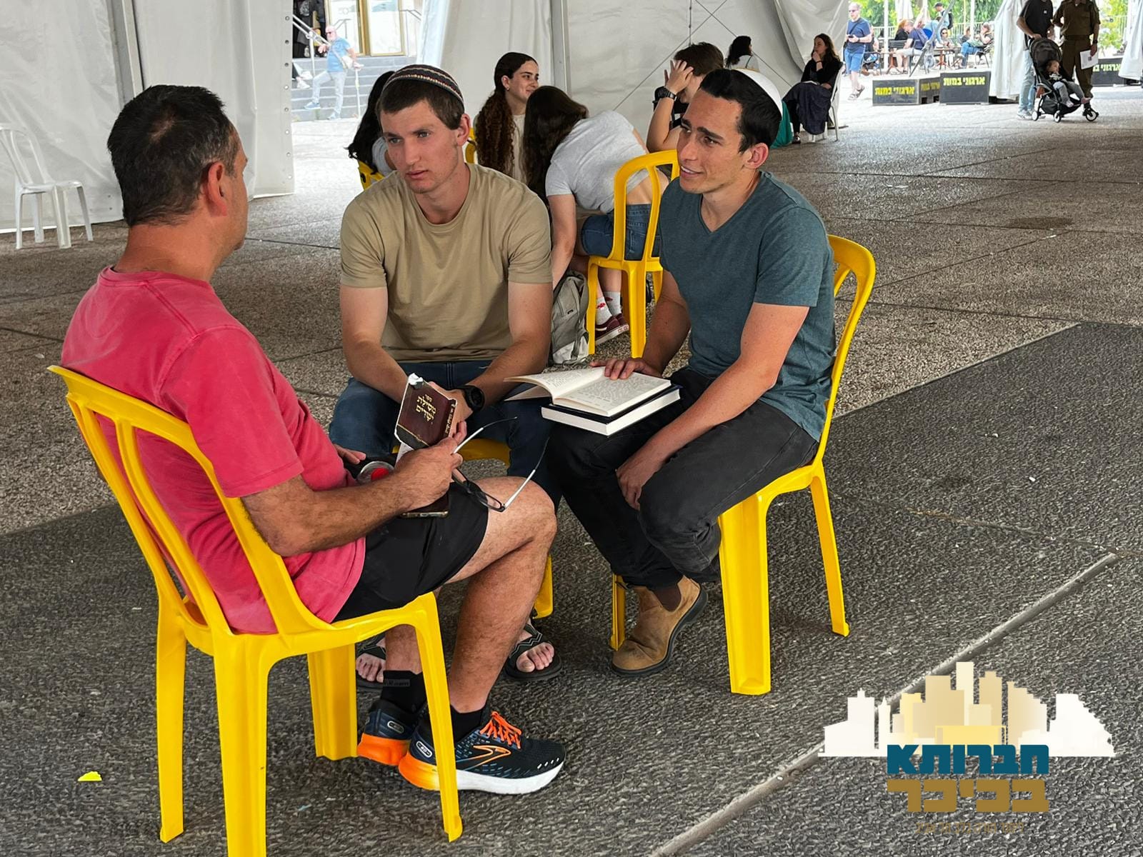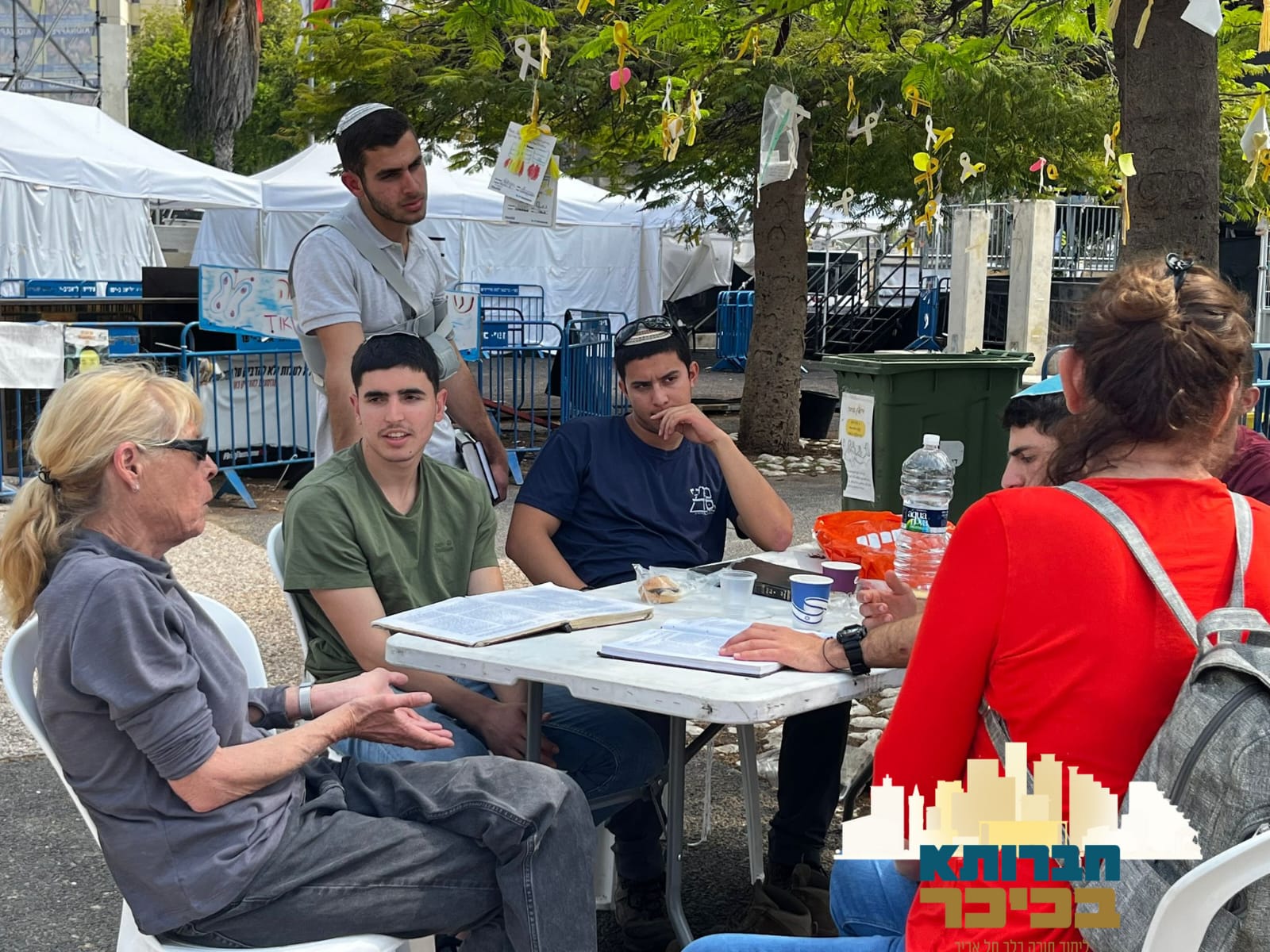 עשרות בחורי ישיבות ובנות מדרשה קיימו חברותות עם חילונים ומסורתיים שהגיעו לכיכר החטופים בתל אביב.