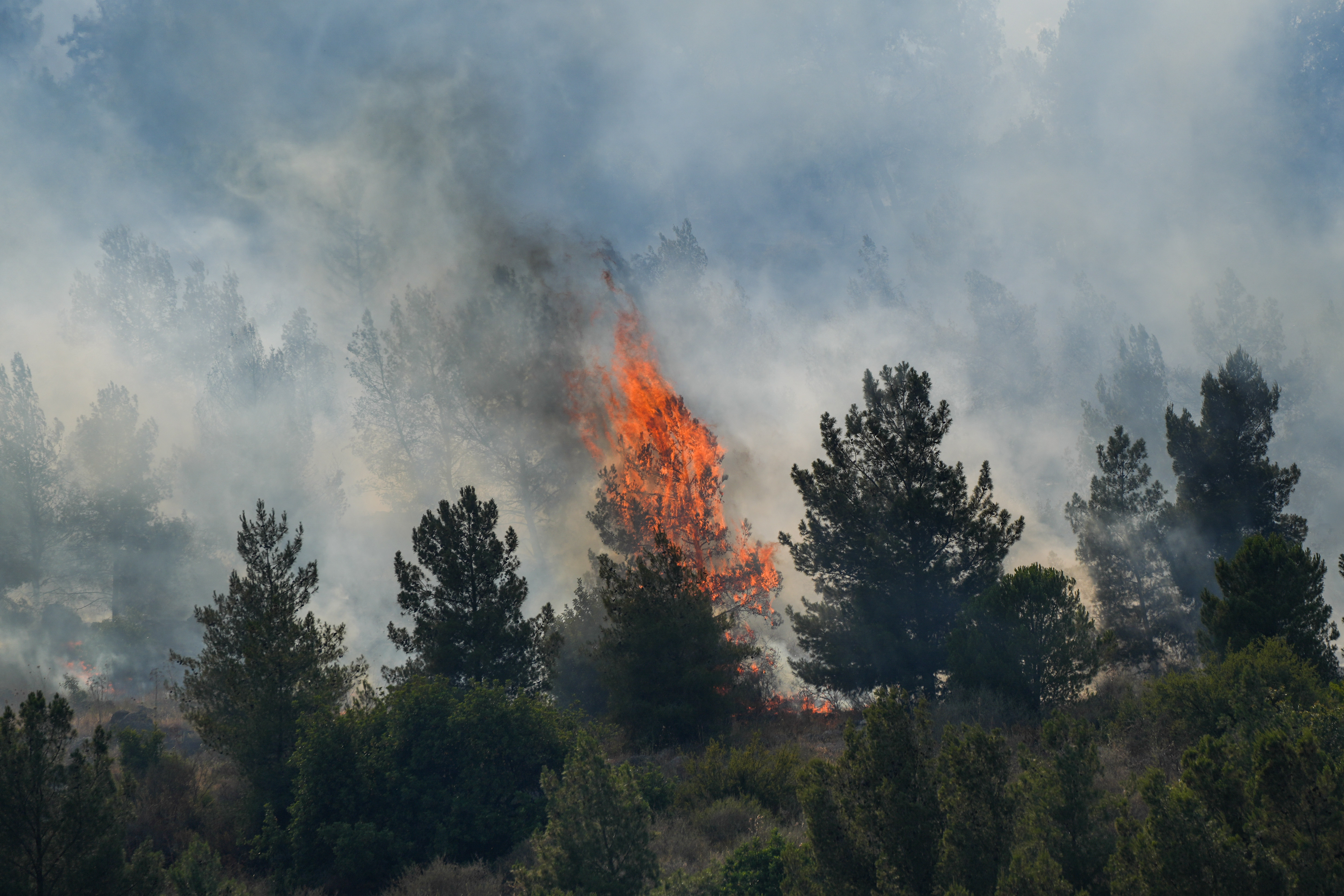 בכבאות והצלה אומרים כי "לוחמי האש נאבקים בשריפות ברחבי המחוז זה למעלה מ-13 שעות בתנאי מזג אוויר קיצוניים ותוך חתירה למגע להגנה על הבתים, להציל חיים ורכוש".