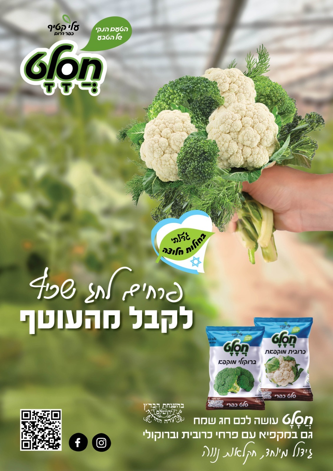 והנה, דווקא בימים אלה ודווקא ממשק נווה שבחולות חלוצה מגיעה לאזרחי ישראל סדרת ירקות קפואים חדשה מבית הגידול של 'חסלט', שם מספרים על הסדרה החדשה ובה "ברוקולי וכרובית בכשרות מהודרת, מוקפאים בשיא טריותם תוך שמירה על הערכים התזונתיים שלהם".