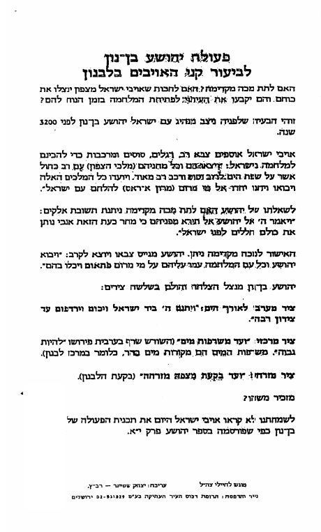 הרב שטיינר סיכם: "מזכיר משהו? לשמחתנו לא קראו אויבי ישראל היום את תכנית הפעולה של יהושע בן נון כפי שפורסמה בספר יהושע פרק י"א".