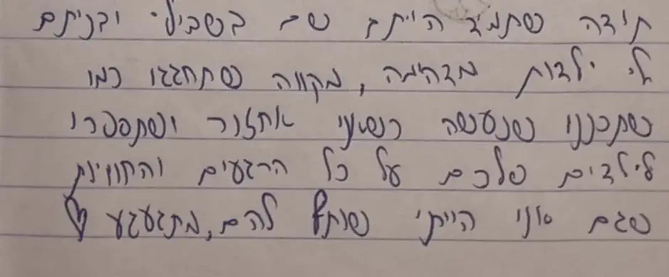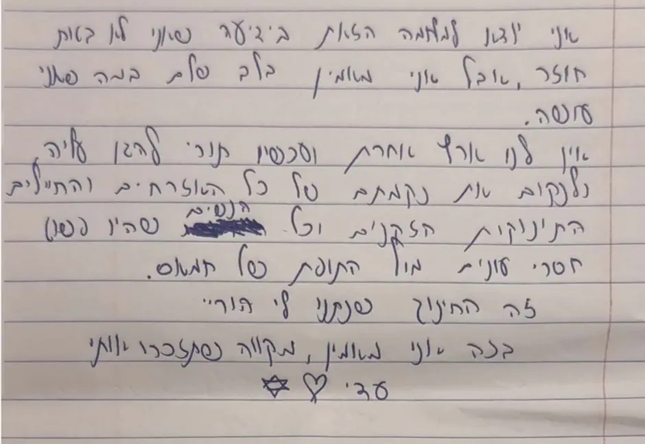 "... מקווה שתחגגו כמו שתכננו שנעשה כשאני אחזור ושתספרו לילדים שלכם על כל הרגעים והחוויות שגם הייתי שותף להם, מתגעגע... "