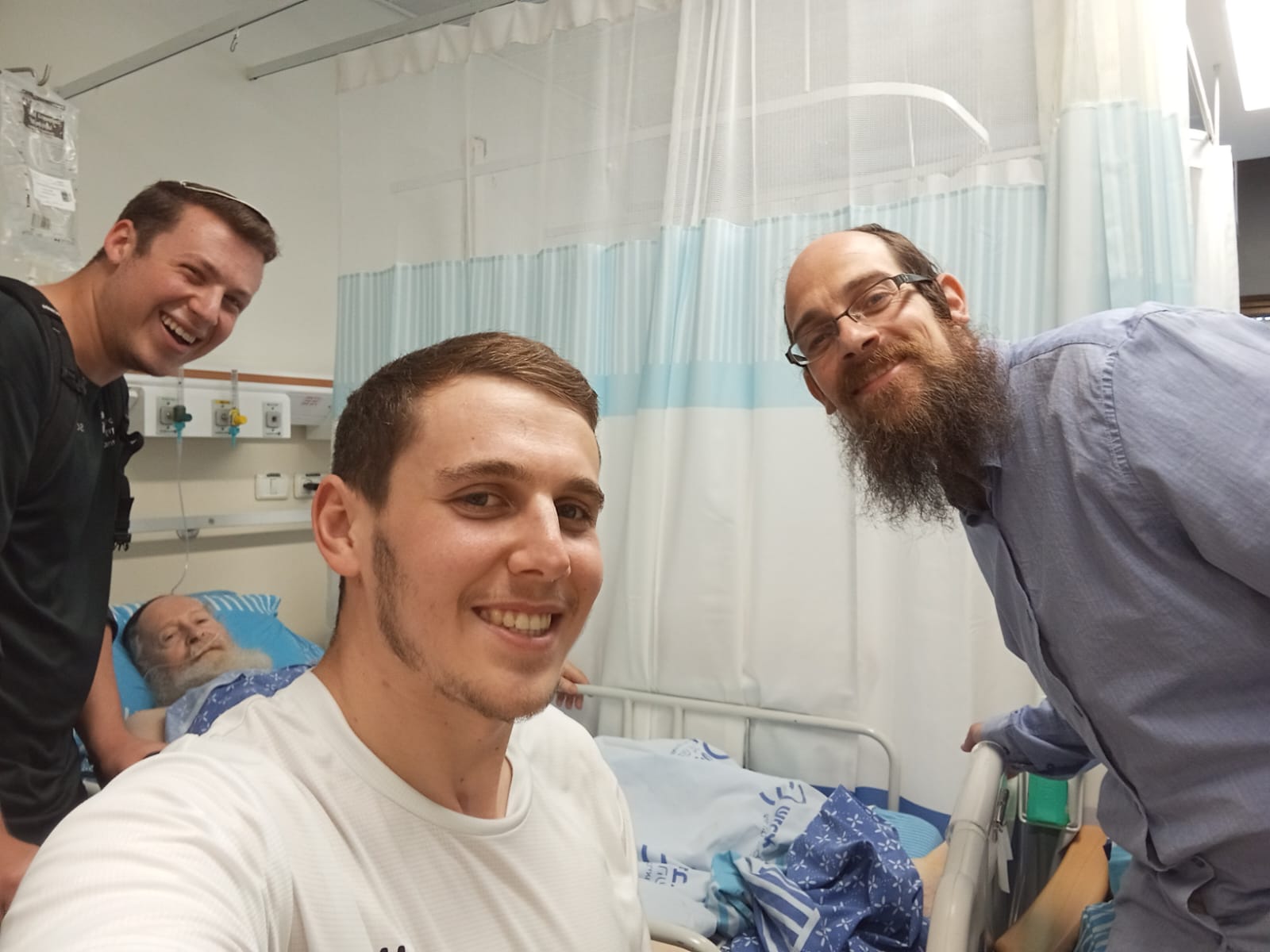 כאשר פגשתי בהלוויה את בנו, ידידי הרב טוביה, הוא הראה לי תמונה מרגשת מתל השומר, שם היה אביו הרב נפתלי מאושפז בתקופה האחרונה. הרב טוביה סיפר שמאחר שבבית החולים היו מאושפזים חיילים רבים שנפצעו במלחמה הנוכחית, הציעו לרב נפתלי, שהיה מפצועי מלחמת ששת הימים להיפגש עם הגיבורים הצעירים, לוחמי ופצועי מלחמת "חרבות ברזל". הרב נענה להצעה בחפץ לב וכדרכו – במאור פנים, וכך רואים בתמונה את הרב נפתלי מחייך מתוך מיטת חוליו ולצידו בנו הרב טוביה ייבדל לחיים ארוכים, ושני גיבורים צעירים, שאיבדו ידיים ורגליים במערכה, אך כולם מחייכים חיוך גדול.