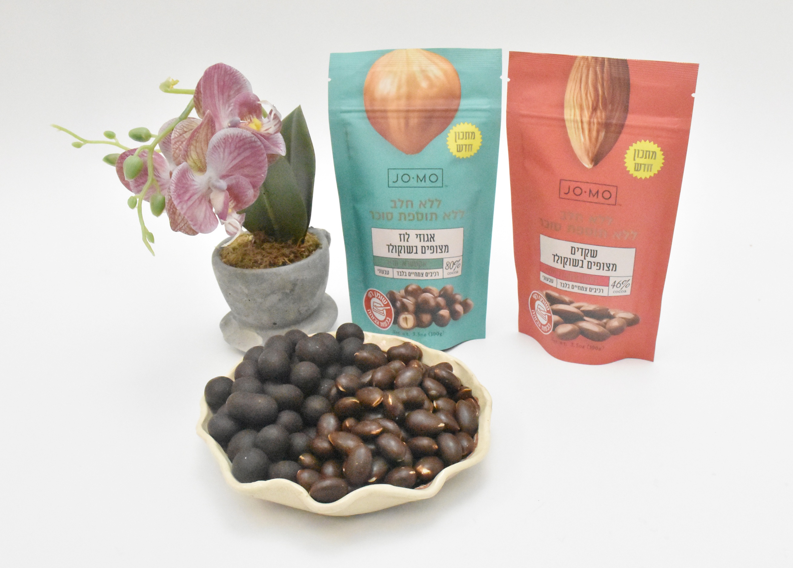 מותג השוקולד JO-MO (ג'ומו) משיק לרגל טו בשבט, חג האילנות: סדרה של אגוזים ושקדים מצופים שוקולד. מוצרי הסדרה ללא סוכר, ללא חלב טבעונית, דלה בפחמימות זמינות ובכשרות גבוהה.