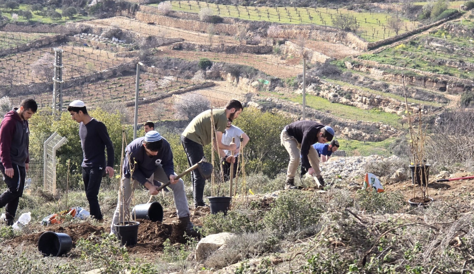 הם סיקלו אבנים, עקרו את הקוצים וחפרו בורות עבור הנטיעות. לאחר מכן נטעו את העצים ובנו שולחנות לימוד כדי לאפשר לימוד תורה לצד ההנאה מהפירות שעתידים להניב.
