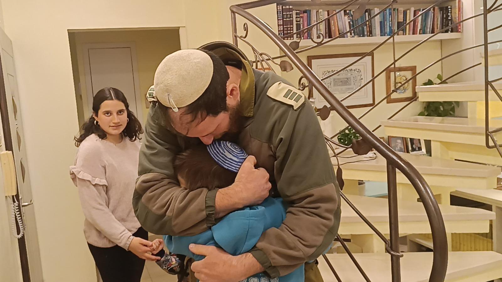 בריסטול ירוק רחב מידות מכסה את חלקה העליון של דלת ביתה של משפחת גולדברג, אשר מתגוררת בשכונת מקור חיים בירושלים. "אבא גיבור, התגעגענו, ברוך שובך!".