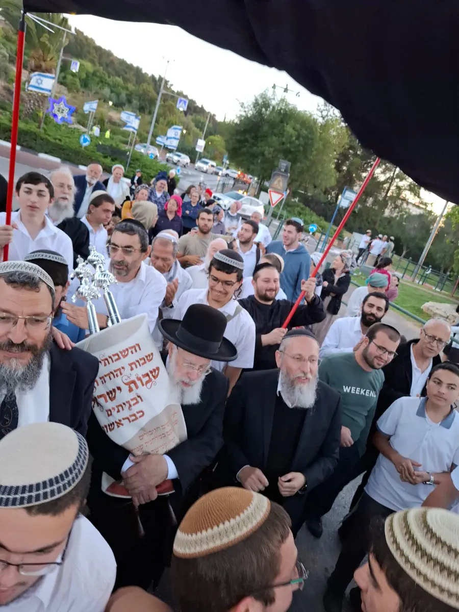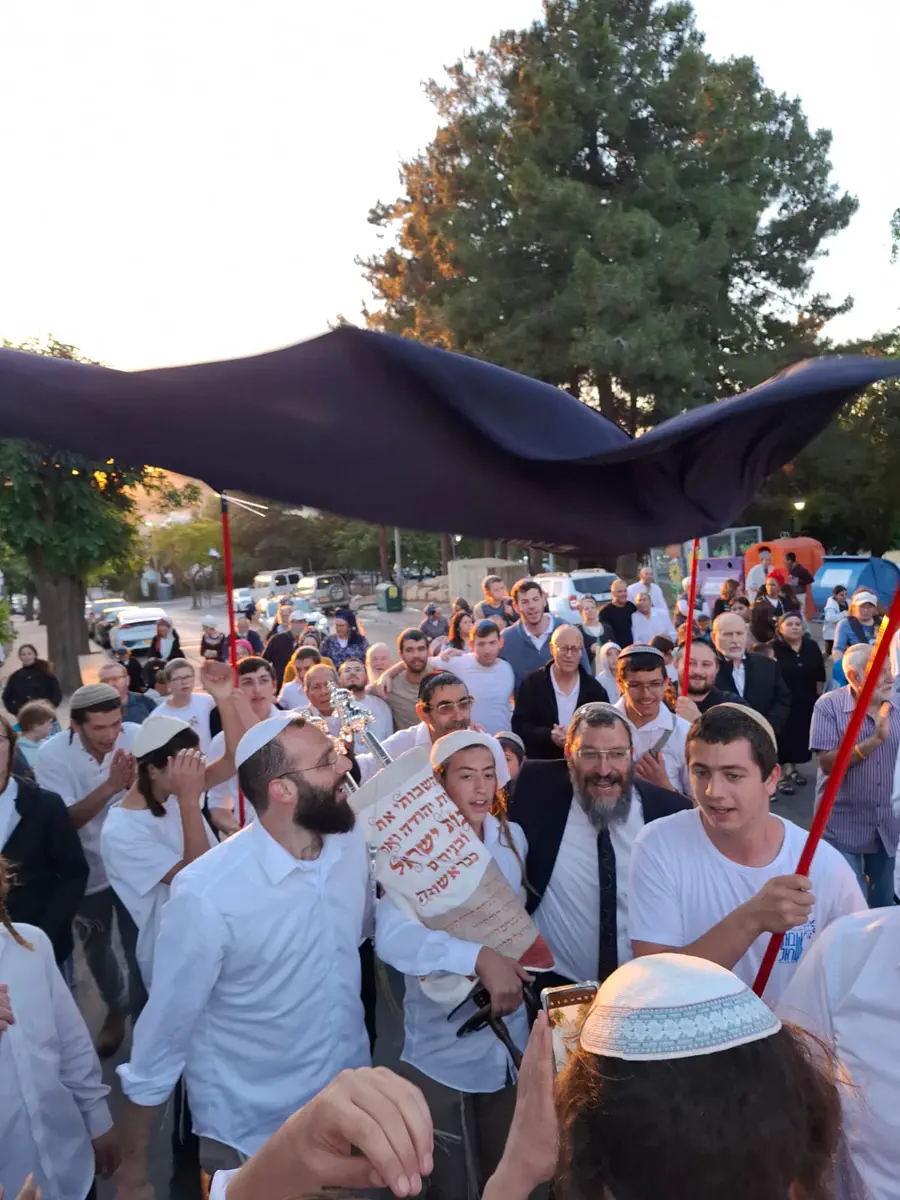האירוע החל בבית הכנסת "אוהל שמעון ואסתר", שם הושלמה כתיבת האותיות האחרונות. משם יצאה תהלוכה חגיגית לכיוון בית המדרש של הישיבה בליווי שירה וריקודים, ובהשתתפות תלמידים, רבנים ובני משפחות הנופלים.