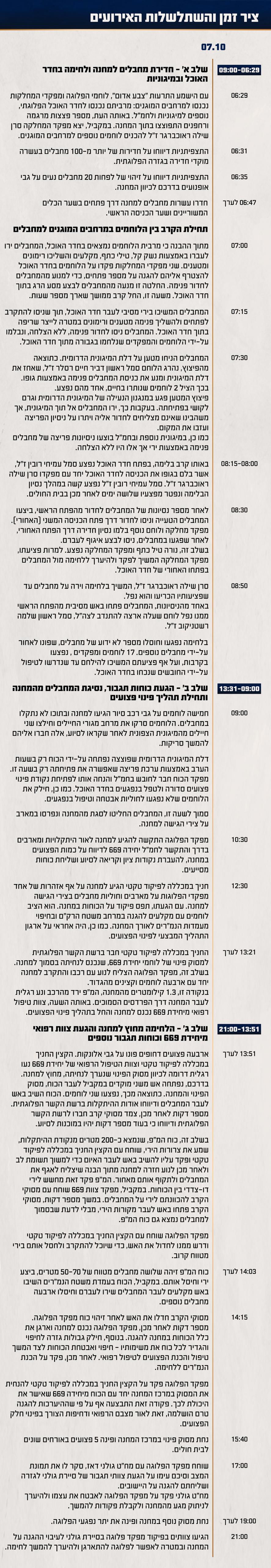 ציר הזמנים כפי שנבחן על ידי צוות התחקיר: