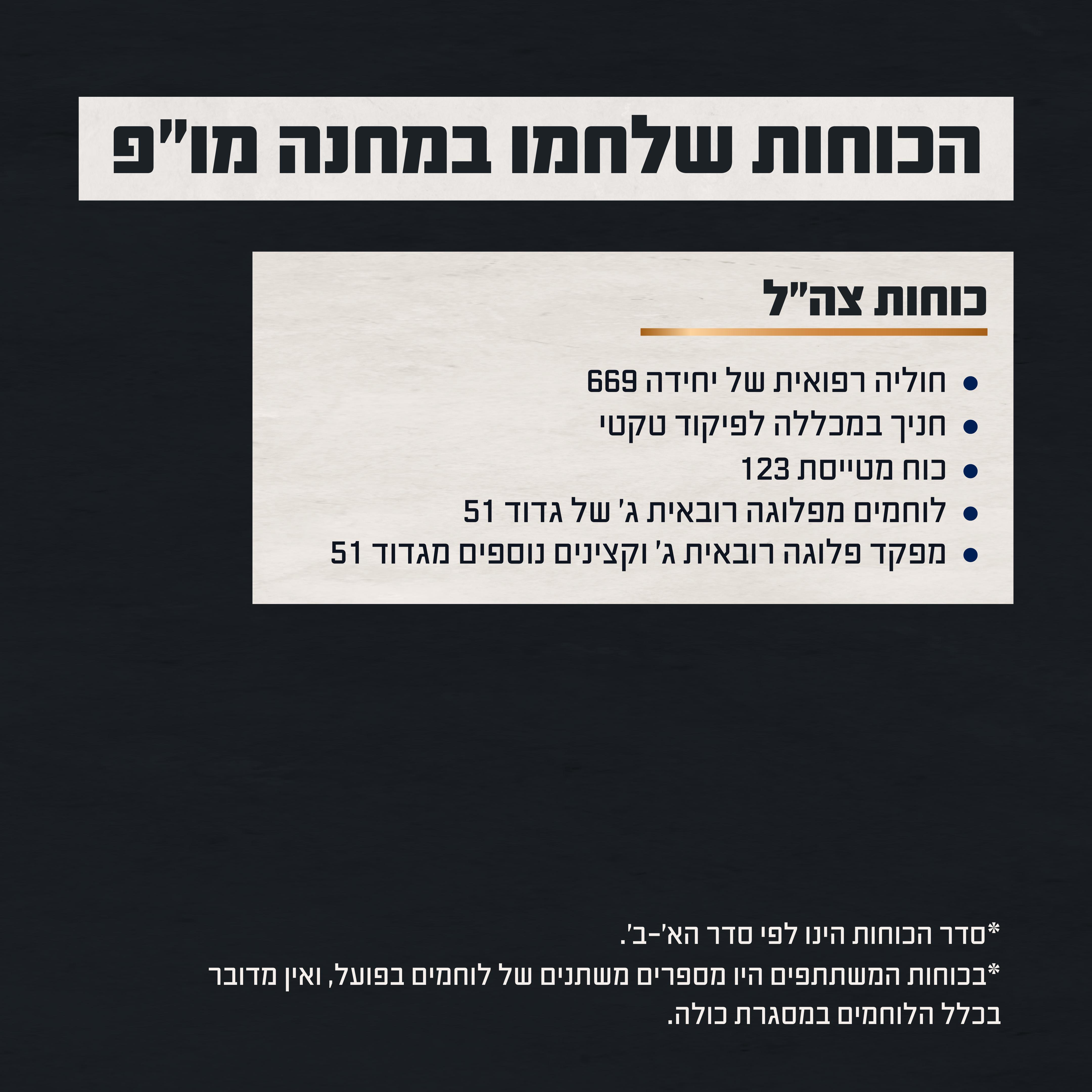 צה"ל מפרסם הבוקר (שלישי) את תחקיר הקרב במחנה מו"פ ב-7 באוקטובר 2023. הצגת התחקיר המבצעי בנושא הקרב במחנה מו"פ הושלמה וממצאיו הוצגו למשפחות השכולות. התחקיר הוצג גם למשרתות ומשרתי המחנה שלחמו ביום האירוע.