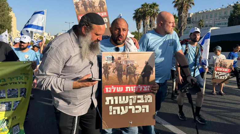 גיבור ישראל הלוחם משה עדיקא שנפצע במלחמה לפני שנה וחצי תועד בשיחה עם האסטרטג ערן שוורץ בצעדת פצועי המלחמה בירושלים.