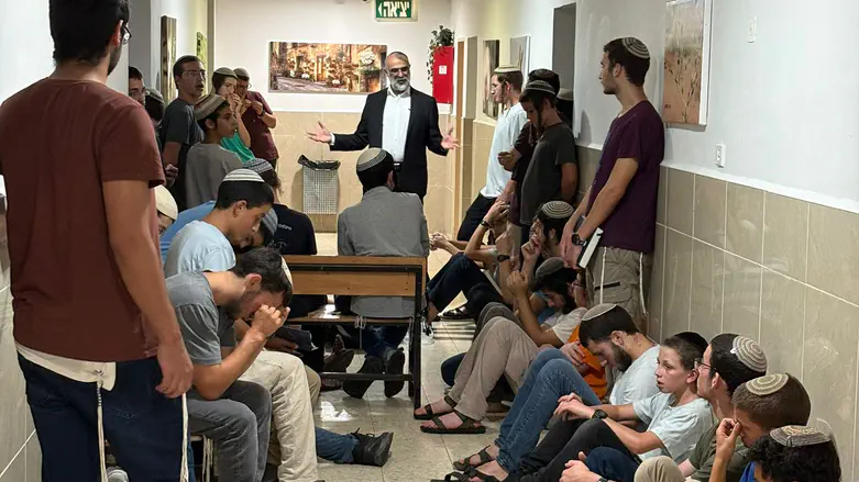 בזמן האזעקה השבוע, תלמידי ישיבת ירושלים לצעירים היו באמצע שיעור של הרב דרור אריה במסגרת ישיבת בין הזמנים המתקיימת מדי שנה במהלך החופש - השיעור המשיך גם במרחב מוגן.