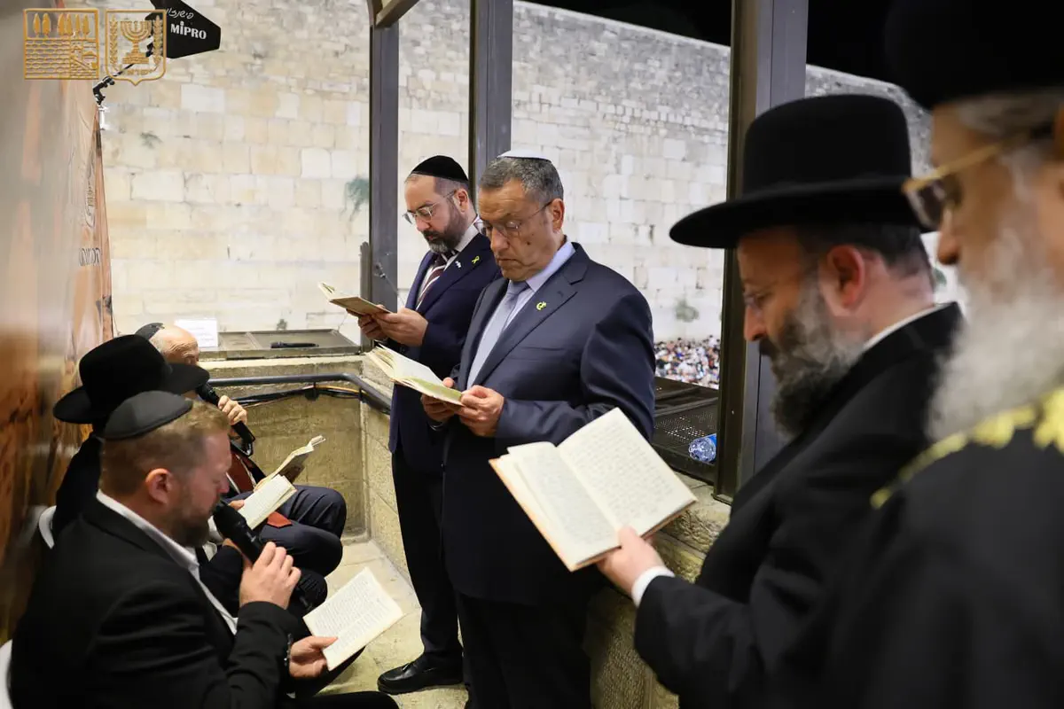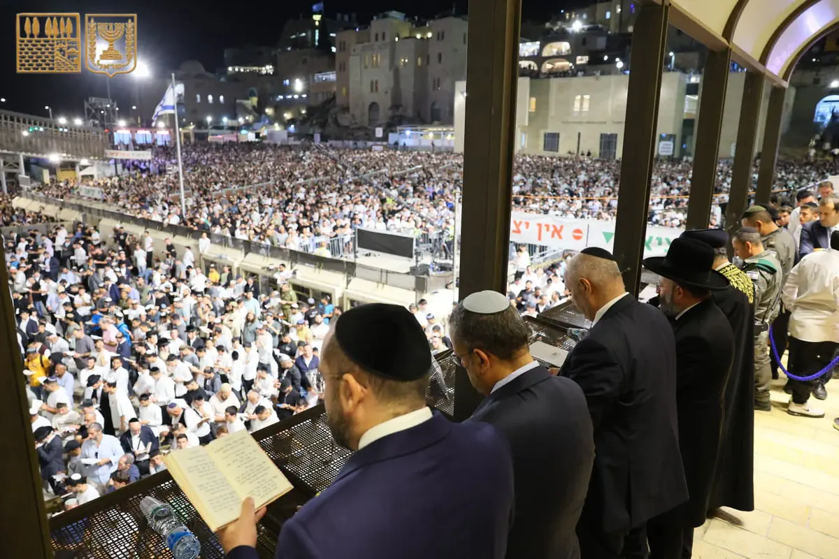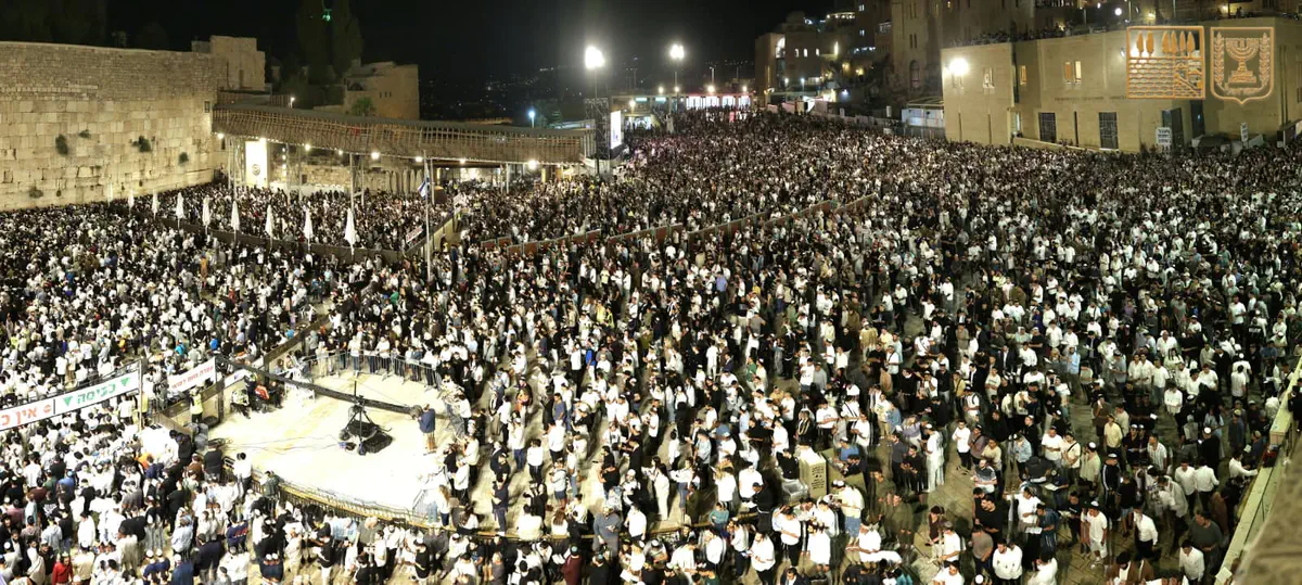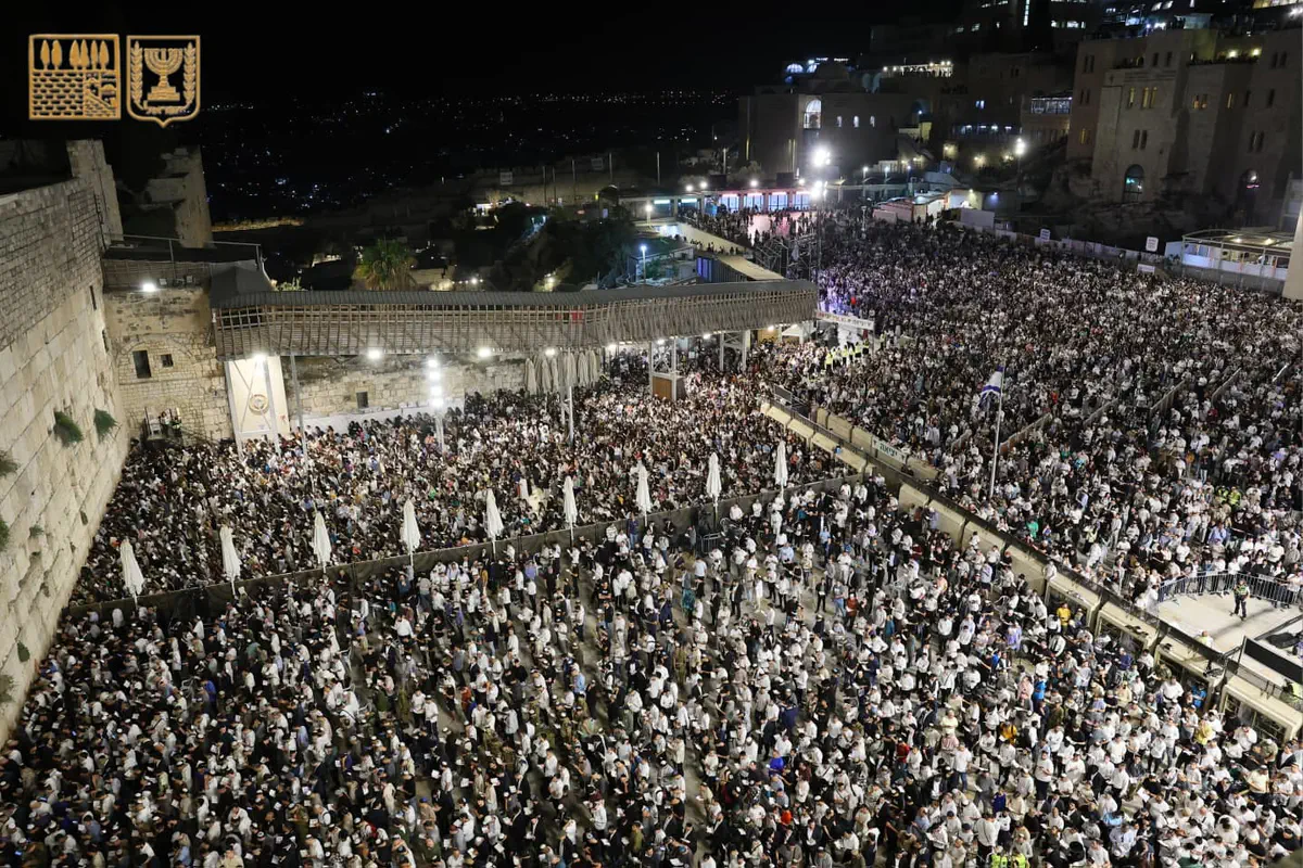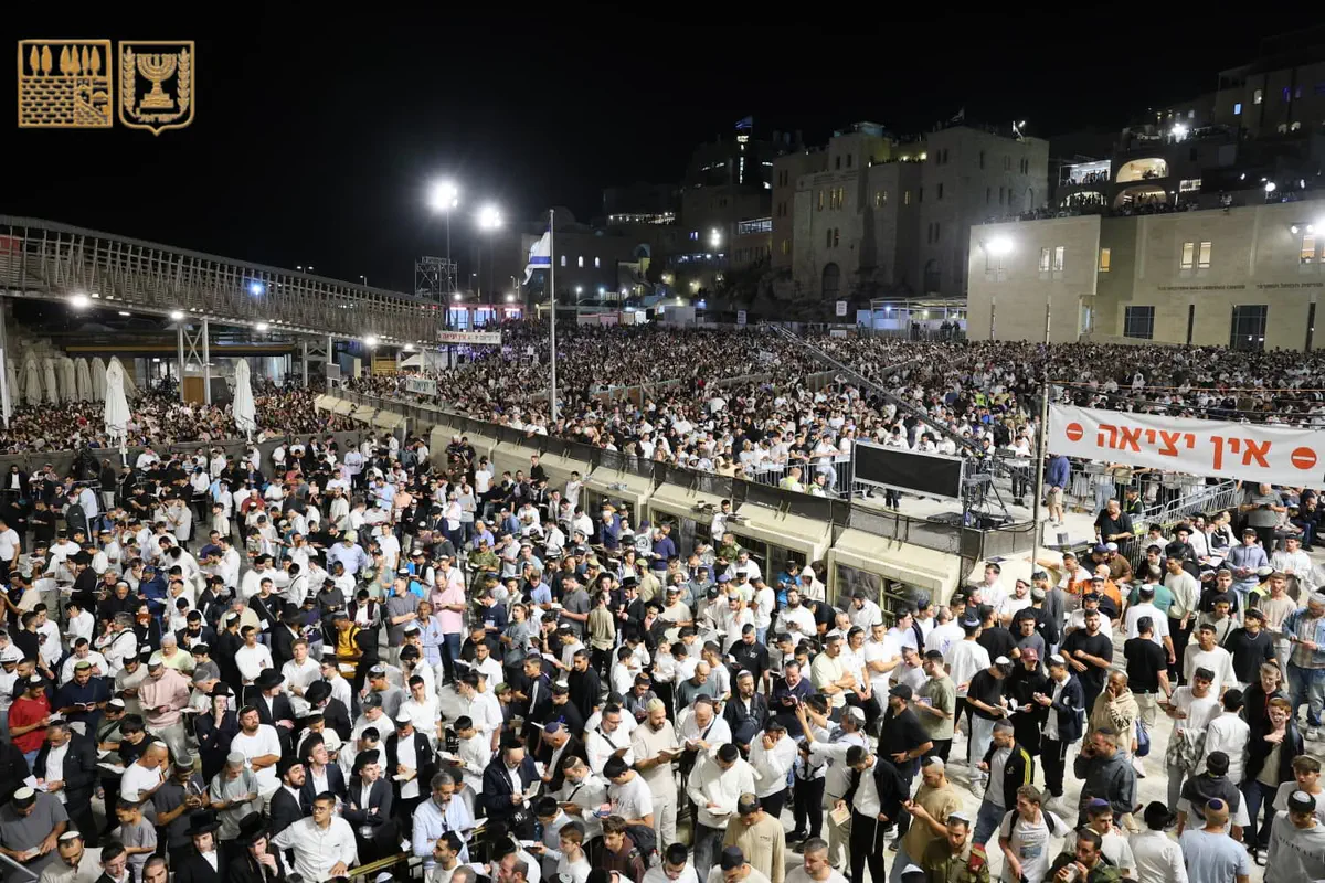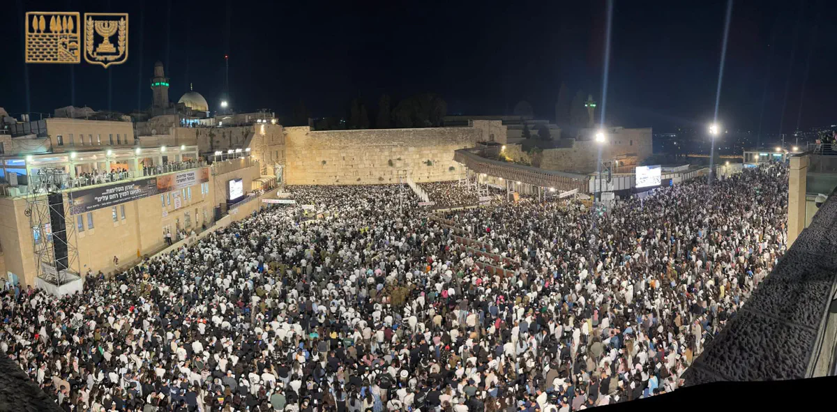 למעלה מ-50 אלף איש השתתפו הלילה (ראשון) במעמד הסליחות המרכזי ברחבת הכותל המערבי, ערב ראש השנה תשפ"ו.