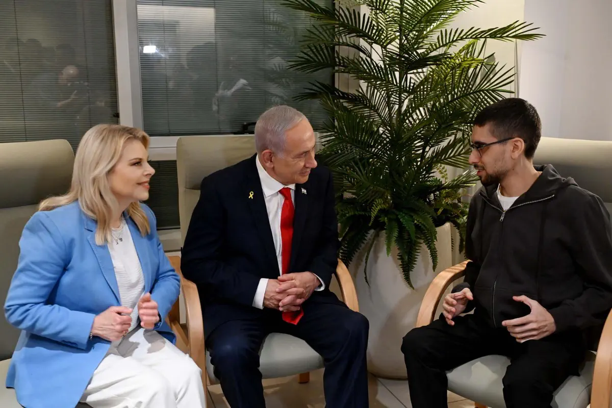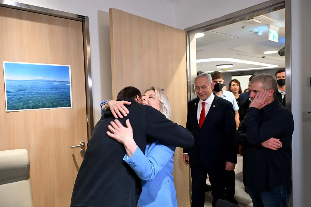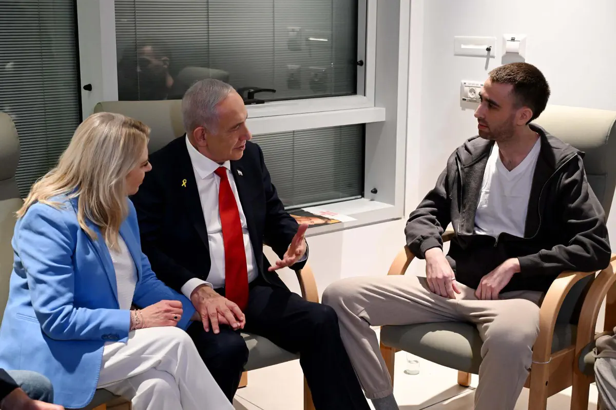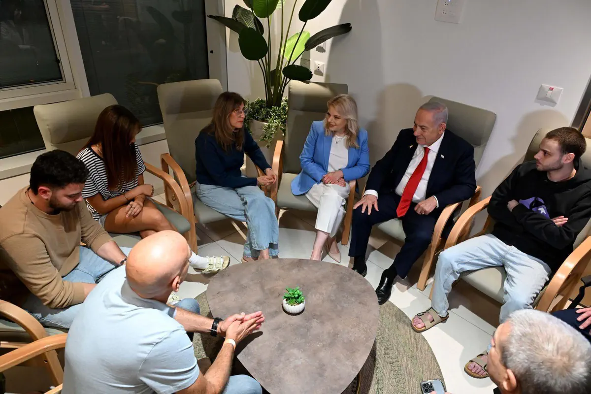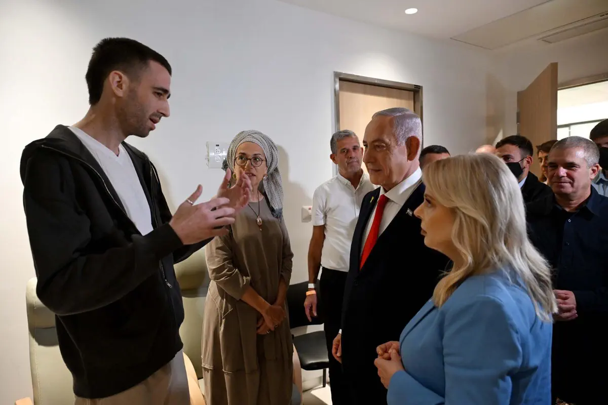 ראש הממשלה בנימין נתניהו ורעייתו שרה נתניהו הגיעו אמש (שלישי) לבית החולים בילינסון ופגשו את החטופים ששבו: אבינתן אור, אלון אהל, גיא גלבוע-דלאל, אביתר דוד ואיתן מור.