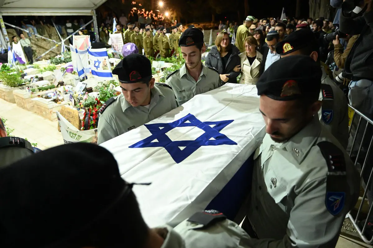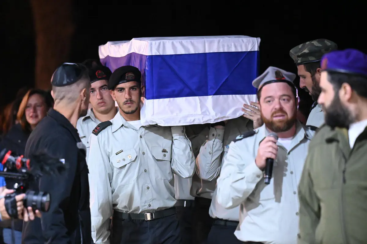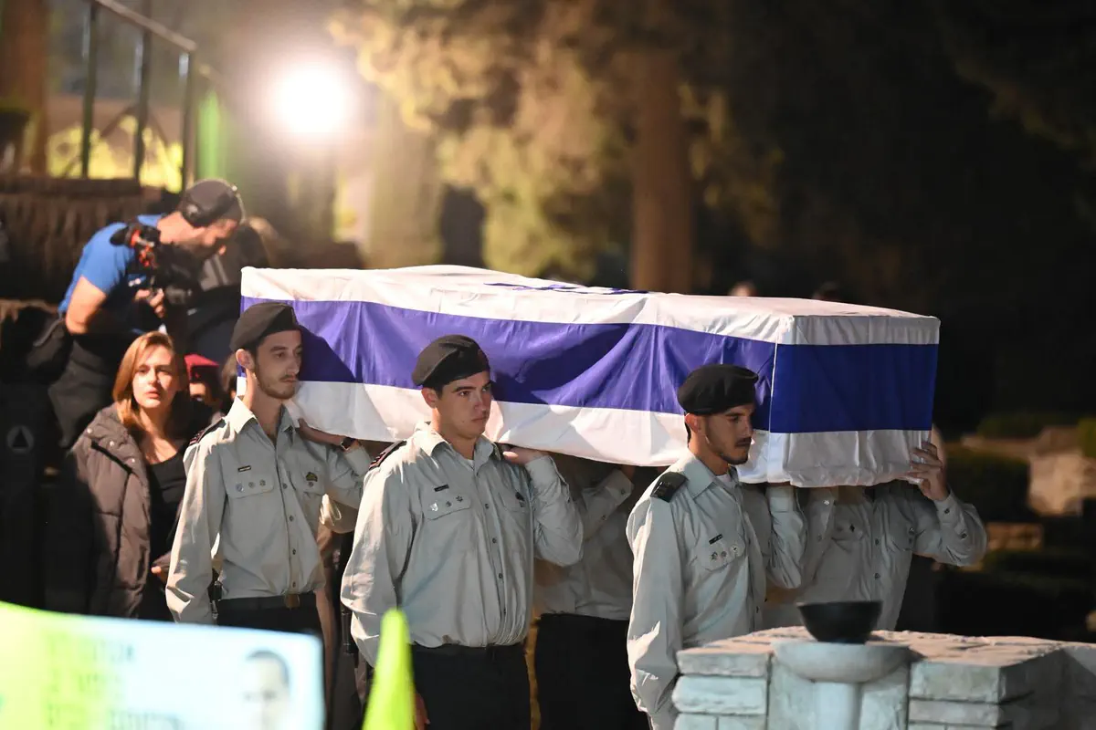 בהר הרצל בירושלים נערכה הלוויתו של של סרן דניאל פרץ ז"ל שגופתו הוחזרה משבי חמאס במהלך שמחת תורה.