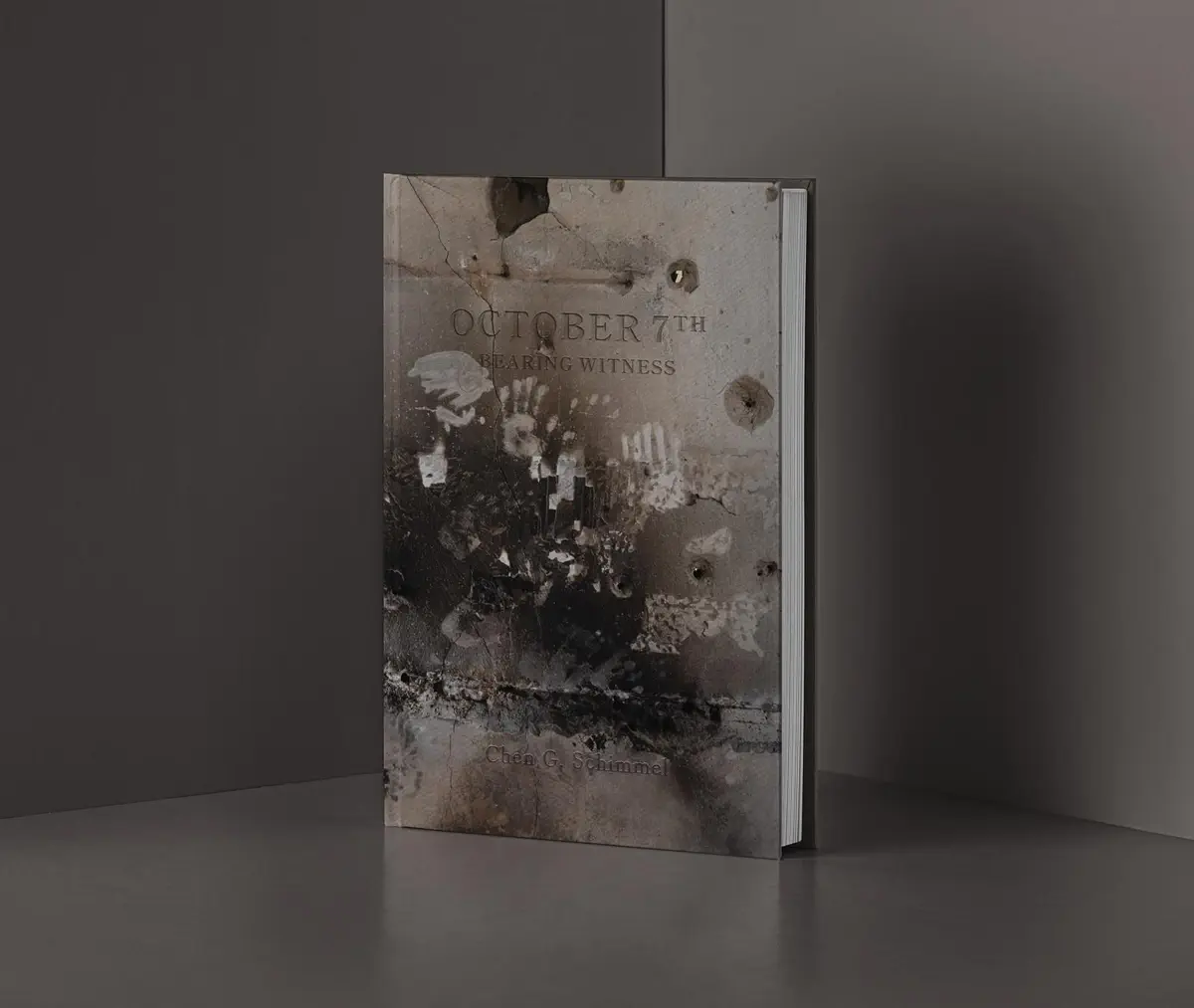 על כריכת הספר מופיעה תמונה קשה במיוחד: קיר מפויח מתוך בית בבארי, ועליו טביעות כפות הידיים של מי שניסו להימלט מהאש שהציתו המחבלים. שימל מספרת כי כשצעדה עם משפחות החטופים במצעד החיים, ראתה בתאי הגזים מראות דומים. "זה ממש אותו דבר", היא אומרת, "כשם שיש מי שמכחישים את השואה - יש המכחישים את טבח השבעה באוקטובר. אני מצלמת כדי להשיב להם".