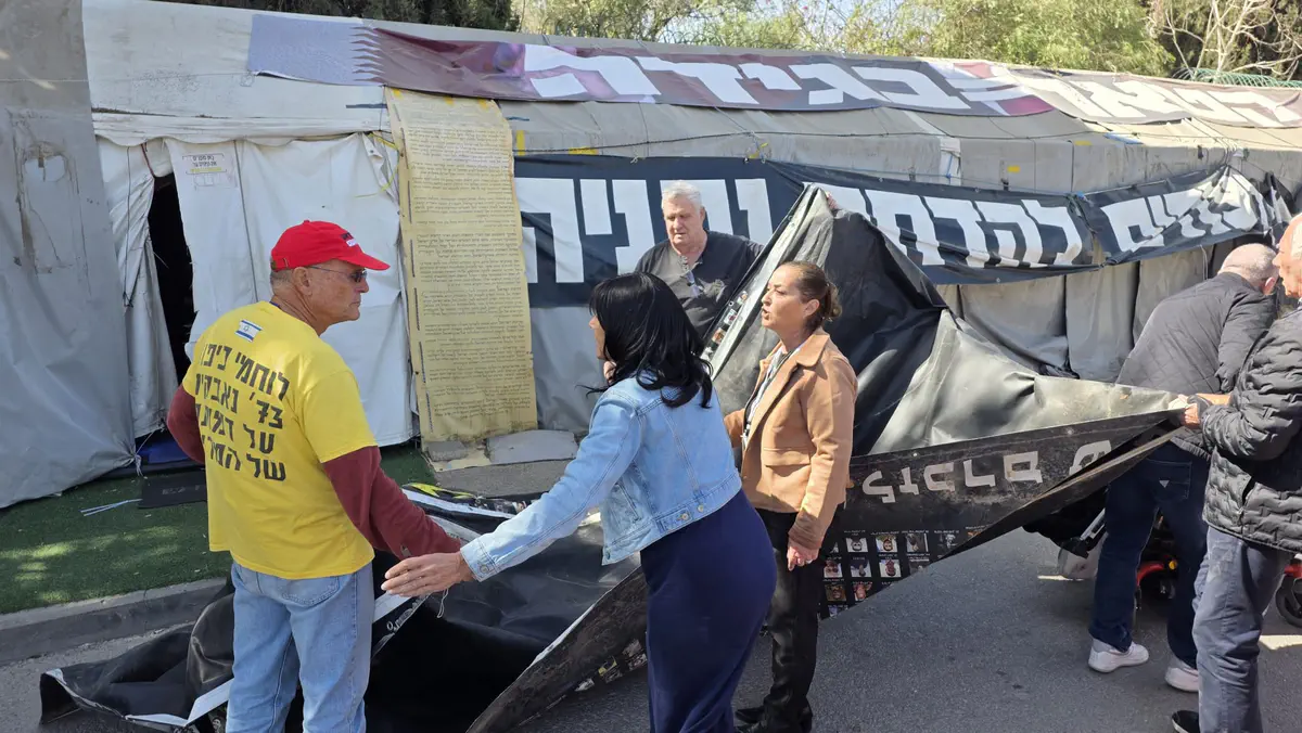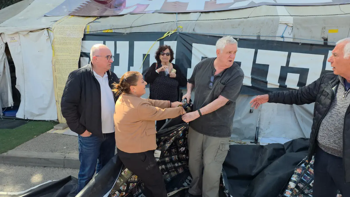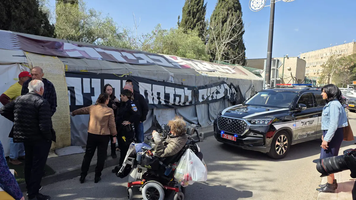 הורים שכולים מ"פורום דין וצדק" הגיעו הבוקר (רביעי) למאהל מחאת השמאל שהוקם סמוך לכנסת בירושלים, ומחו בחריפות על השימוש בתמונות ילדיהם שנרצחו כחלק מהמאבק הפוליטי נגד הממשלה.