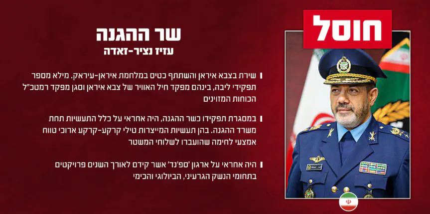 כעת ניתן לפרסם כי במהלך התקיפות חוסלה צמרת ההנהגה הביטחונית של המשטר האיראני: