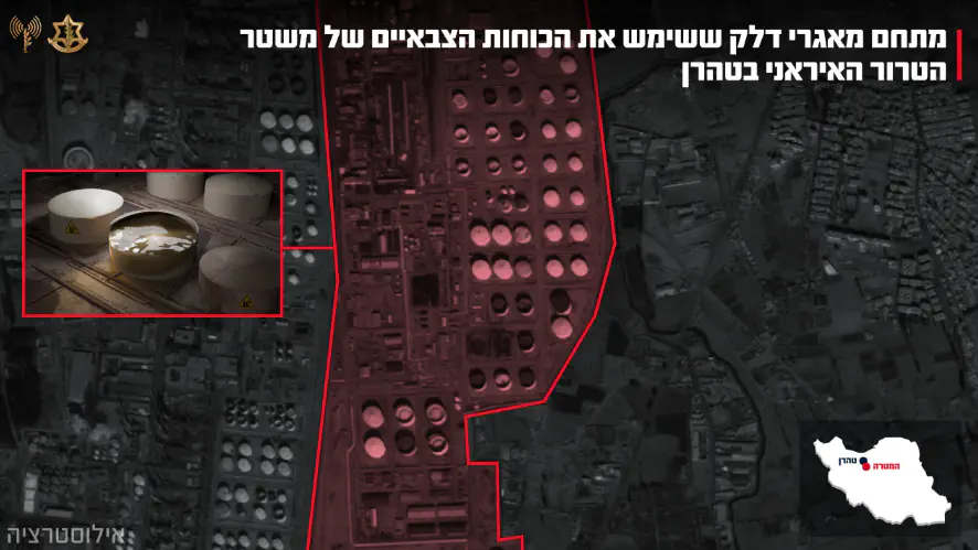 מצה"ל נמסר כי הכוחות הצבאיים של משטר הטרור האיראני משתמשים באופן ישיר ותכוף במיכלי הדלק להפעלת תשתיות צבאיות, ובעזרתם משטר הטרור האיראני מעביר דלק לצרכנים שונים, ובהם הגופים הצבאיים באיראן.