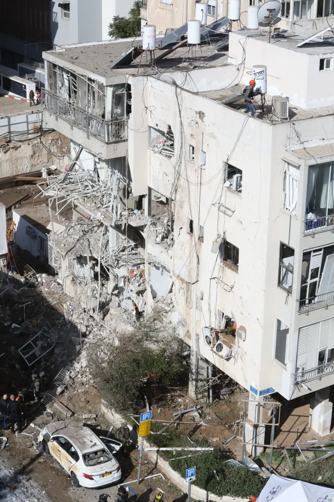 חובש רפואת חירום במד"א יואל משה סיפר: "מיד כשקיבלנו את הדיווחים על נפילה יצאנו בכוחות גדולים למקום, הגענו לזירה תוך דקות בודדות, ראינו הרס, עשן, והמולה. התחלנו מיד בביצוע סריקות, 4 נפגעים התהלכו כשמצבם קל ולא נזקקו להמשך טיפול רפואי. אנחנו ממשיכים בסריקות על מנת לוודא שאין נפגעים נוספים".