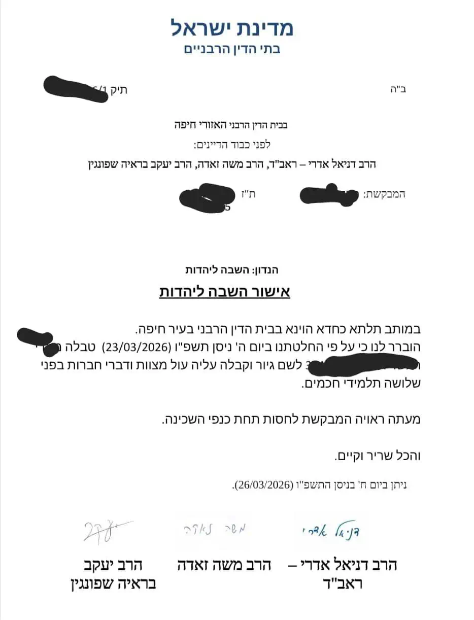 לאחר שנים שבהן חיה הרחק מהעולם היהודי, הוכרה השבוע הצעירה כיהודייה על ידי בית הדין הרבני, בתום תהליך שבו בחרה לשוב לזהותה המקורית. הסיפור התחיל בבית שבו גדלה כנוצרייה לכל דבר, לאחר שאמה התנצרה שנים קודם לכן. למרות שחיה ללא שבת, כשרות או מושגי מסורת, היא מעידה כי תמיד חשה שמשהו בפנים לא נותן לה מנוחה. תחושת שייכות שלא ידעה להסביר במילים, אבל בערה בלב.