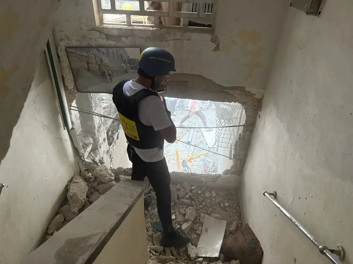 פראמדיק מד"א, יששכר וייס, סיפר: "קיבלנו דיווח על נפילה, הגענו למקום עם ניידות טיפול נמרץ אמבולנסים ואופנועי תגובה מידית. ראינו הרס ואנשים מתהלכים כשהם בהכרה וילדה בת 11 כשהיא בהכרה מעורפלת וסובלת מחבלות בגפיים מרסיסים. הענקנו לה טיפול רפואי ופינינו אותה בניידת טיפול נמרץ של מד"א לבית החולים כשמצבה קשה. צוותי מד"א נוספים העניקו במקביל טיפול רפואי למספר פצועים וגם אותם פינו לבתי החולים".